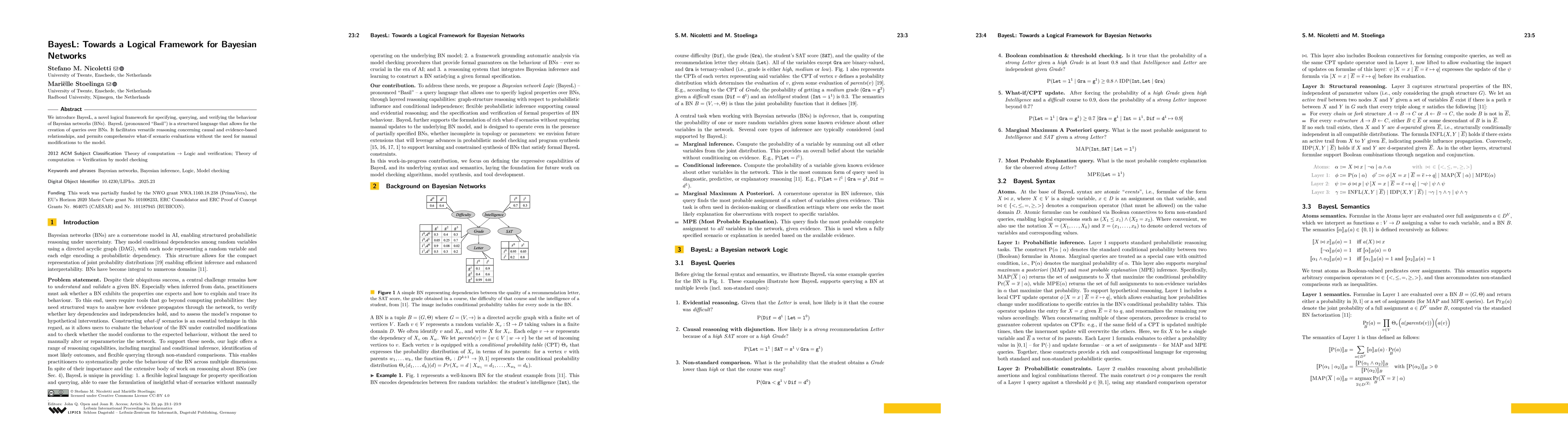 BayesL provides a principled framework for the formal specification and verification of Bayesian network behavior, enabling more accurate analysis and decision-making.