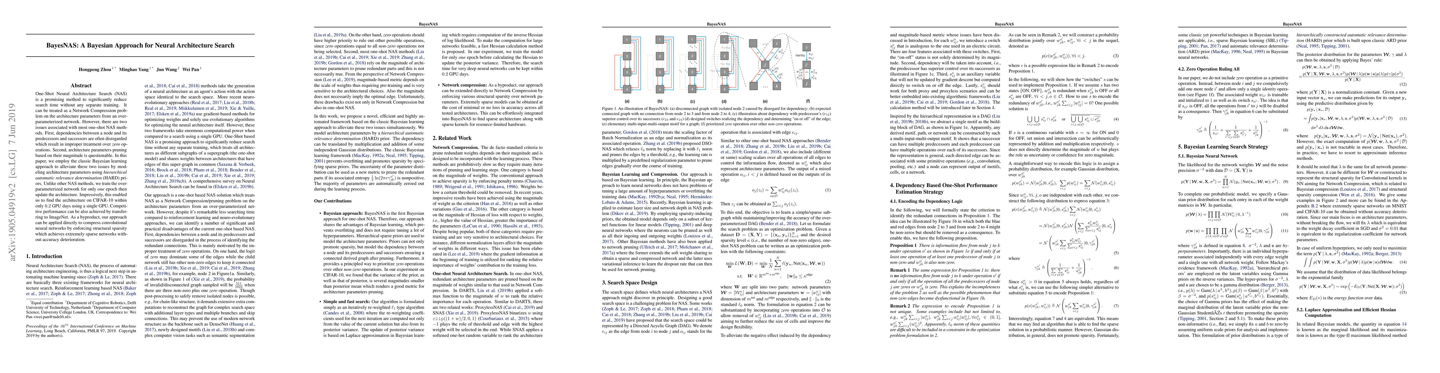 BayesNAS utilizes a Bayesian approach with hierarchical automatic relevance determination (HARD) priors to address dependencies in neural architecture search, significantly reducing search time and enabling competitive performance on CIFAR-10 and ImageNet with minimal GPU usage. The method also effectively compresses convolutional neural networks by enforcing structural sparsity.