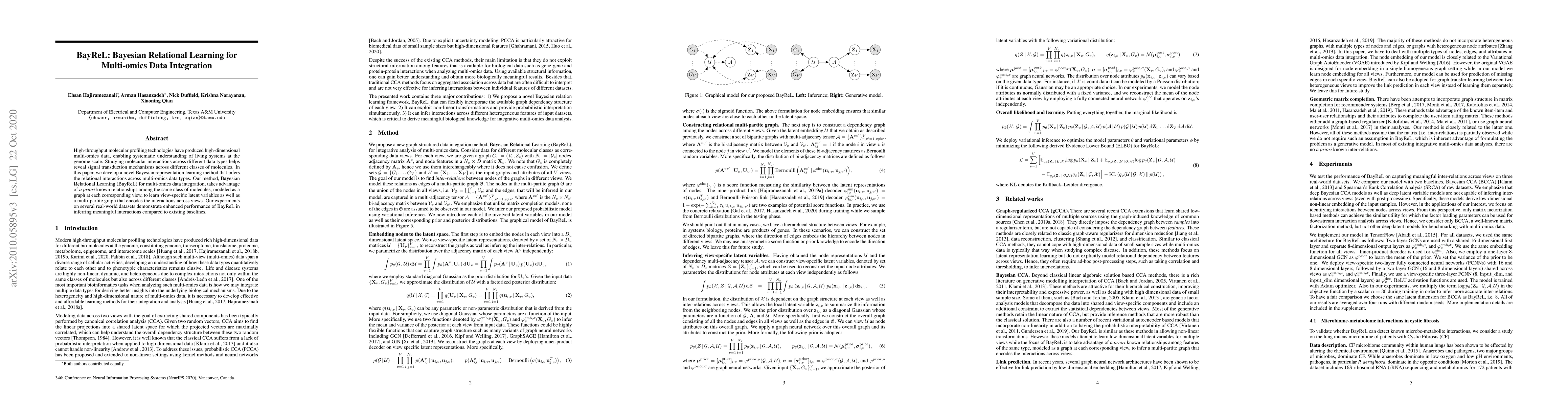 The paper introduces BayReL, a Bayesian relational learning method for integrating multi-omics data, leveraging known relationships to infer interactions across different data types. Experiments show BayReL outperforms existing methods in discovering meaningful molecular interactions.