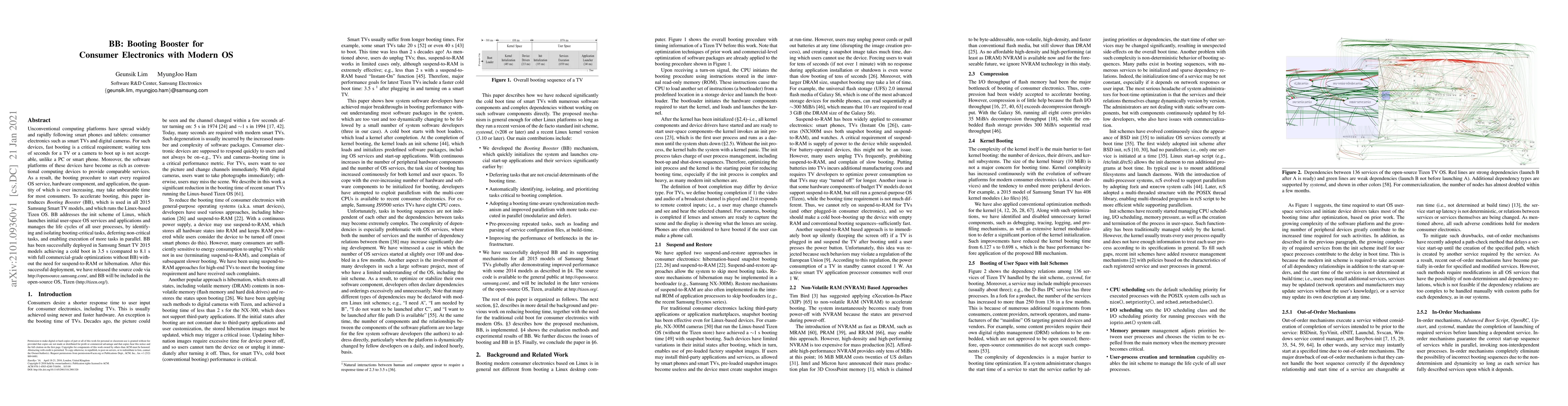 This paper introduces Booting Booster (BB), a system designed to accelerate the booting process for consumer electronics running modern operating systems like Linux-based Tizen OS. BB optimizes the boot sequence by prioritizing critical tasks, deferring non-essential ones, and allowing parallel execution, achieving a significant reduction in boot time for Samsung Smart TV 2015 models.