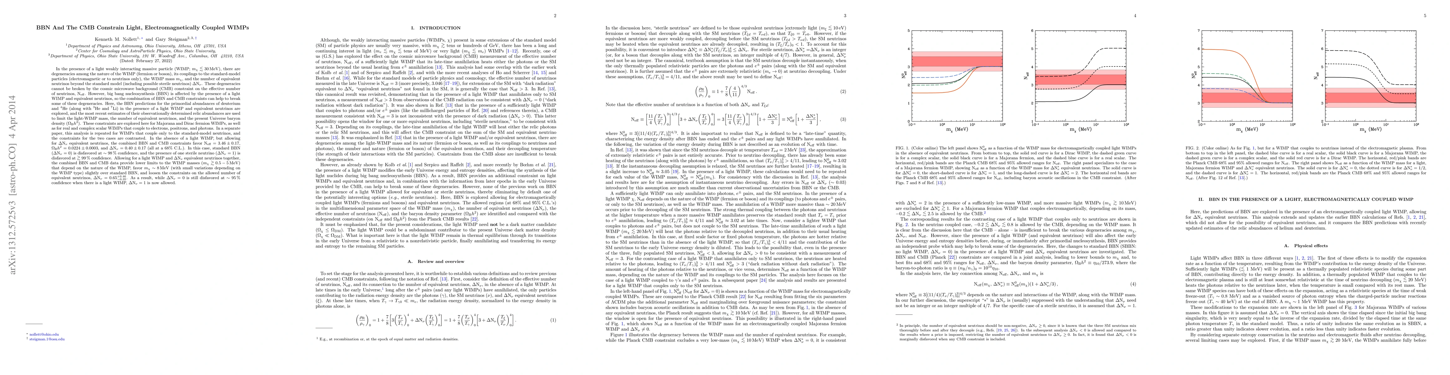 This paper explores how big bang nucleosynthesis (BBN) and cosmic microwave background (CMB) data together constrain the properties of light weakly interacting massive particles (WIMPs) and equivalent neutrinos. It finds that while CMB alone cannot break degeneracies among WIMP characteristics and equivalent neutrinos, combining BBN and CMB data can provide tighter constraints on WIMP mass, equivalent neutrino number, and baryon density, allowing for the presence of one sterile neutrino.