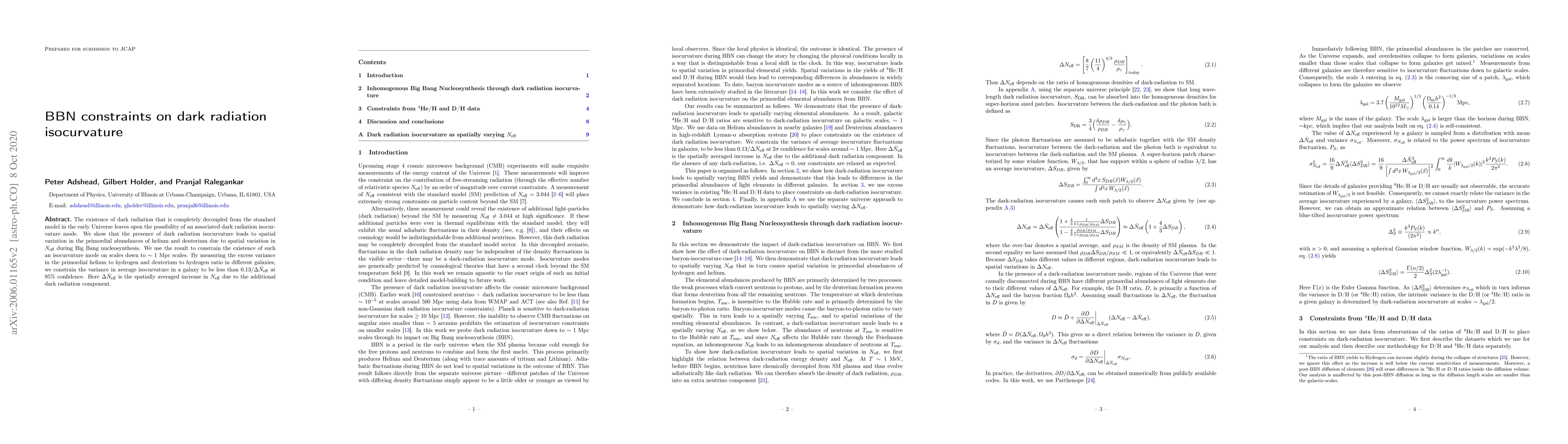 New research constrains the possibility of dark radiation isocurvature on galaxy scales, using data from primordial helium and deuterium abundance measurements to set a limit on spatial variation in the effective number of neutrinos.