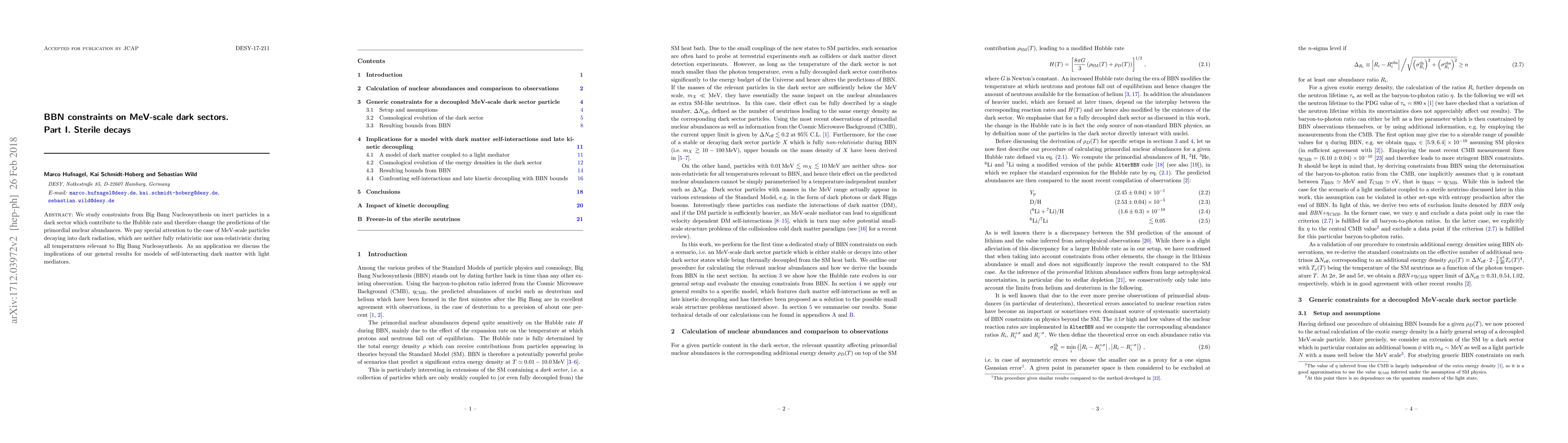 Researchers studied constraints on dark sectors at MeV-scale using Big Bang Nucleosynthesis, focusing on particles that decay into dark radiation, which affects predictions of primordial nuclear abundances. The study has implications for models of self-interacting dark matter with light mediators.