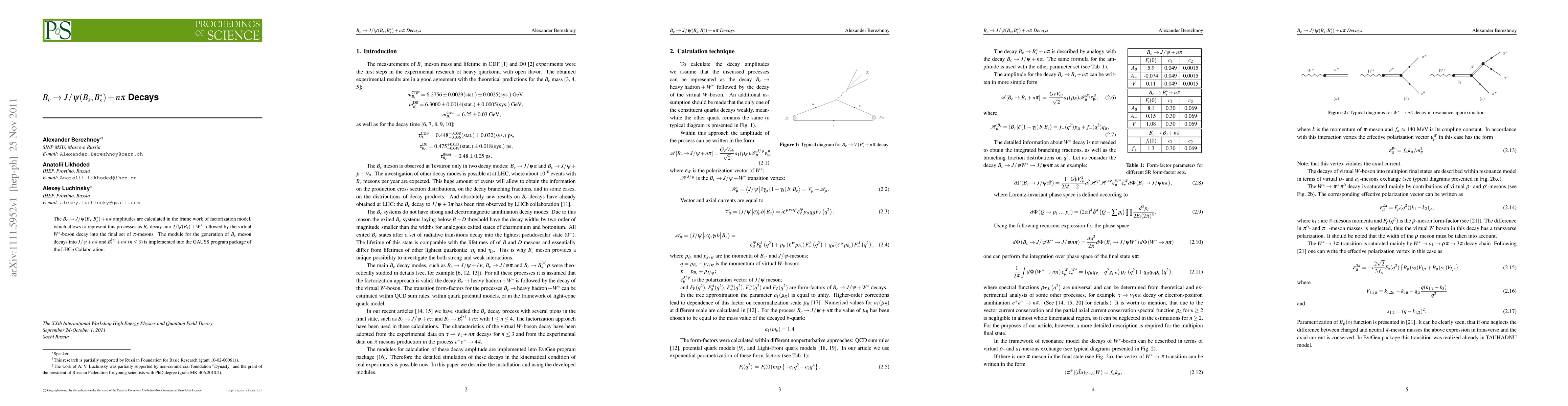 This paper calculates decay amplitudes for Bc -> J/psi(Bs,Bs*)+ n pi processes using the factorization model, representing the decay as Bc into J/psi Bs+W* followed by W*-boson decay into pi mesons. The results are implemented in the GAUSS program package for the LHCb Collaboration.