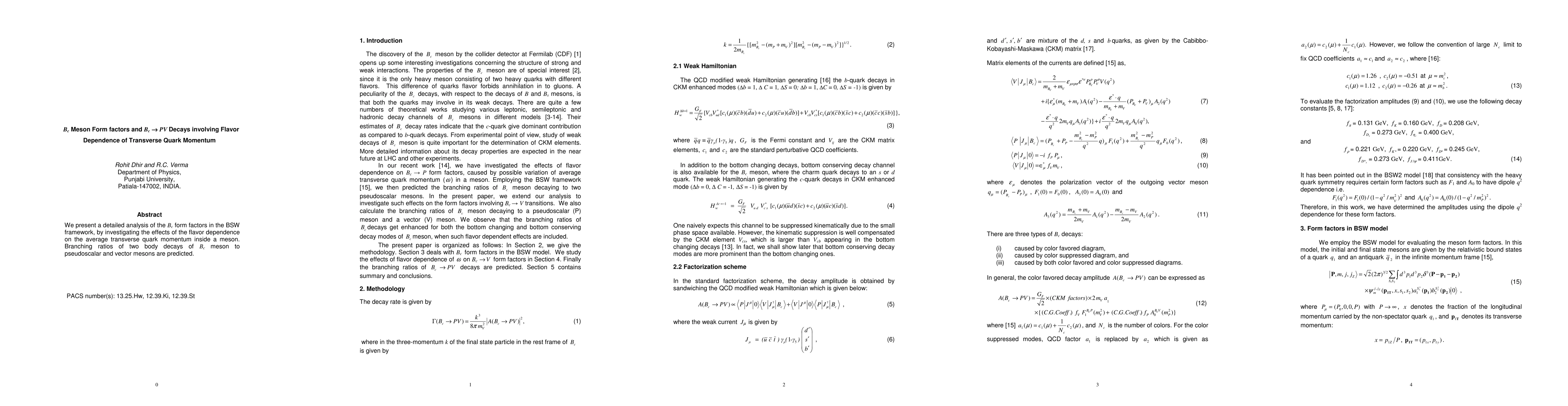 This paper analyzes Bc meson form factors using the BSW framework, focusing on the flavor dependence of the average transverse quark momentum. It predicts branching ratios for Bc meson decays into pseudoscalar and vector mesons.