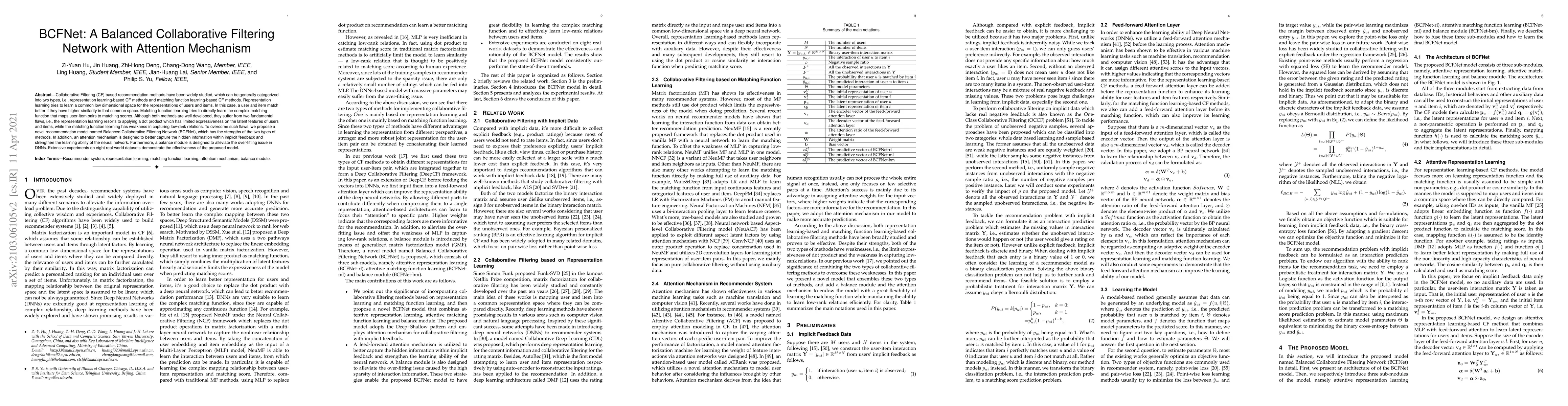 A new collaborative filtering model called BCFNet combines strengths of representation learning and matching function learning to improve recommendation accuracy, with an added attention mechanism to capture hidden information.