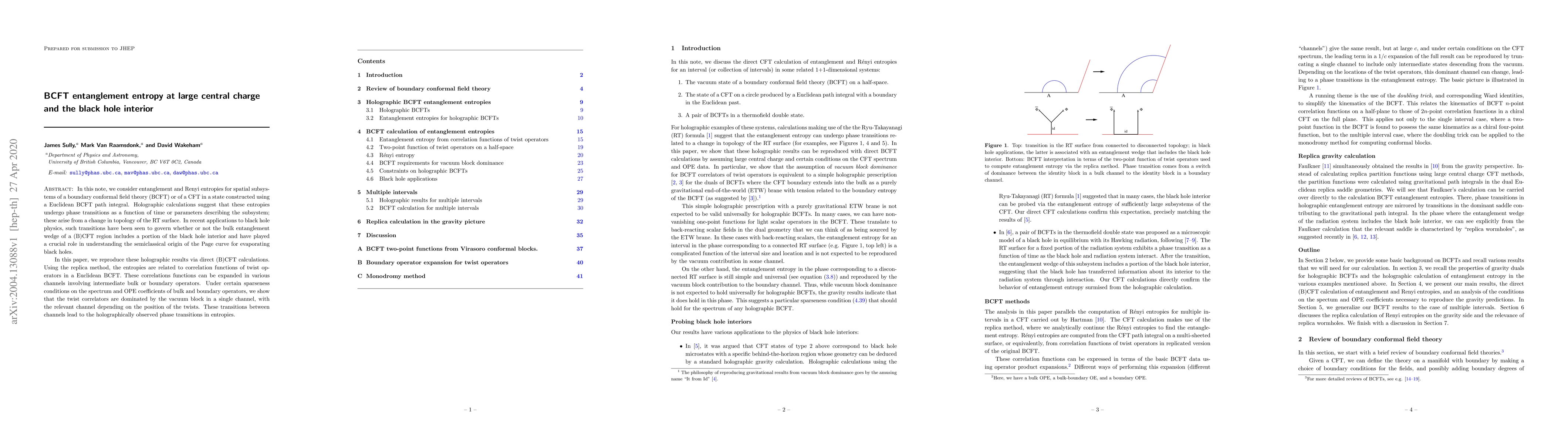 This paper investigates entanglement and Rényi entropies in boundary conformal field theories (BCFT) and their holographic implications for black hole interiors. It demonstrates that phase transitions in these entropies, arising from changes in the topology of the RT surface, determine whether the bulk entanglement wedge includes the black hole interior, thus playing a crucial role in understanding the semiclassical origin of the Page curve for evaporating black holes.