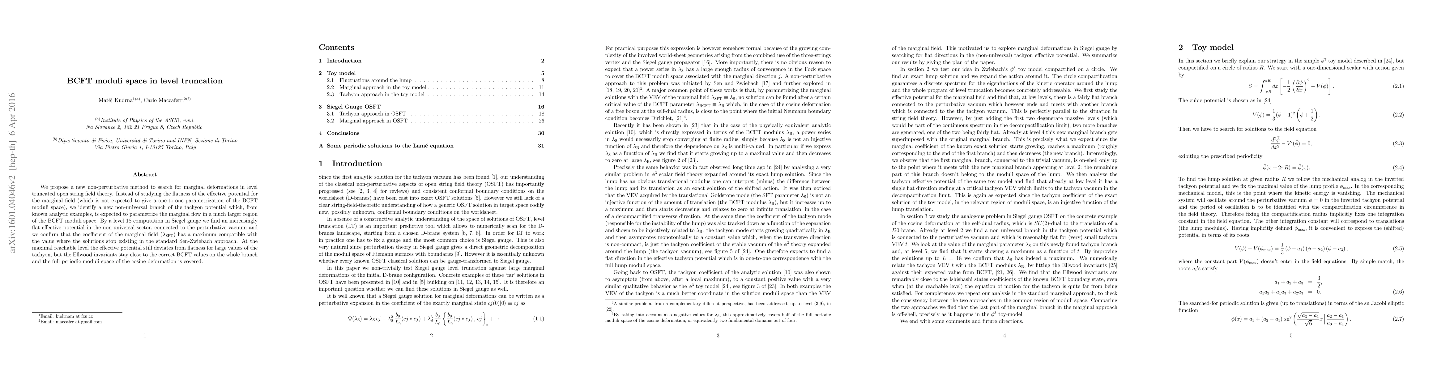 We propose a new non-perturbative method to search for marginal deformations in level truncated open string field theory. Instead of studying the flatness of the effective potential for the marginal field (which is not expected to give a one-to-one parametrization of the BCFT moduli space), we identify a new non-universal branch of the tachyon potential which, from known analytic examples, is expected to parametrize the marginal flow in a much larger region of the BCFT moduli space. By a level 18 computation in Siegel gauge, we find an increasingly flat effective potential in the non-universal sector, connected to the perturbative vacuum and we confirm that the coefficient of the marginal field (lambda_SFT) has a maximum compatible with the value where the solutions stop existing in the standard Sen-Zwiebach approach. At the maximal reachable level, the effective potential still deviates from flatness for large values of the tachyon, but the Ellwood invariants stay close to the correct BCFT values on the whole branch and the full periodic moduli space of the cosine deformation is covered.