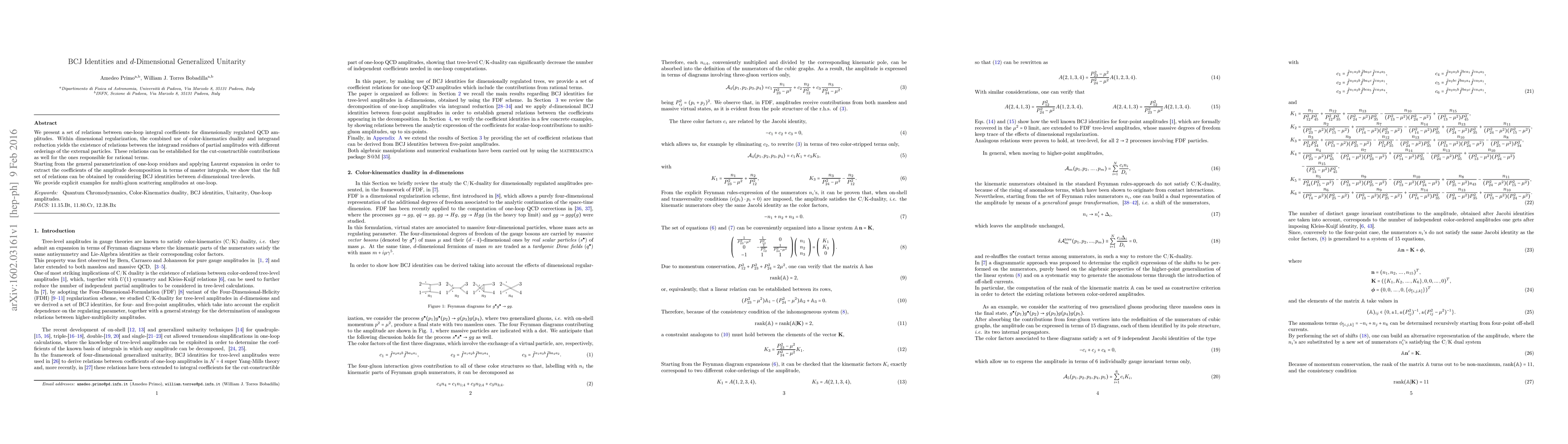 This paper establishes relations between one-loop integral coefficients in dimensionally regulated QCD amplitudes using color-kinematics duality and integrand reduction. It demonstrates that BCJ identities in $d$-dimensions lead to generalized unitarity relations for both cut-constructible and rational terms in multi-gluon scattering amplitudes.