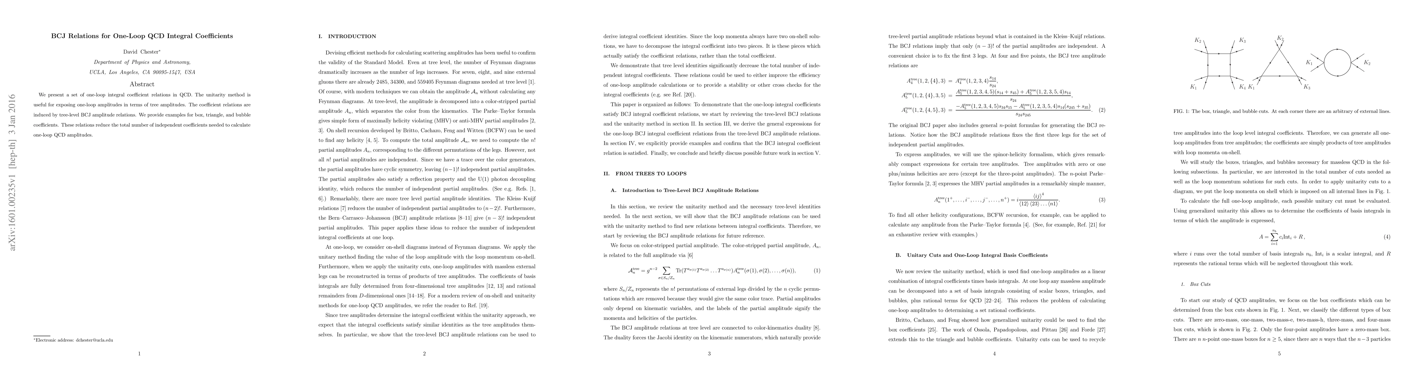 The paper introduces a systematic approach to relate one-loop QCD integral coefficients using BCJ relations, simplifying the computation of one-loop amplitudes.