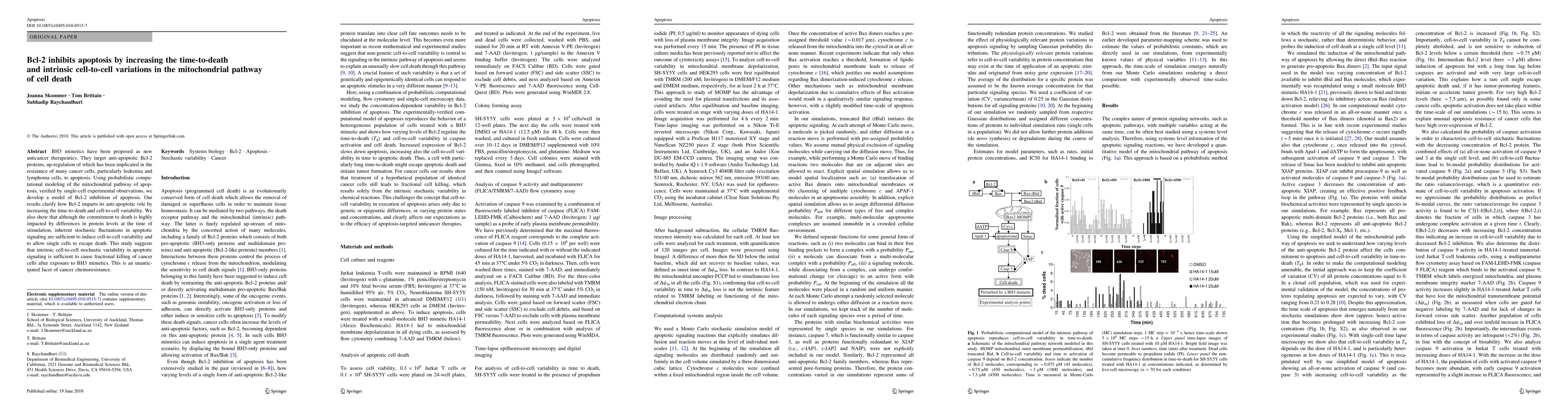 This study reveals that Bcl-2 inhibits apoptosis by extending the time-to-death and increasing intrinsic cell-to-cell variability in the mitochondrial pathway. It highlights that stochastic fluctuations in apoptotic signaling can cause fractional killing of cancer cells after BH3 mimetic treatment, suggesting a new dimension of cancer chemoresistance.