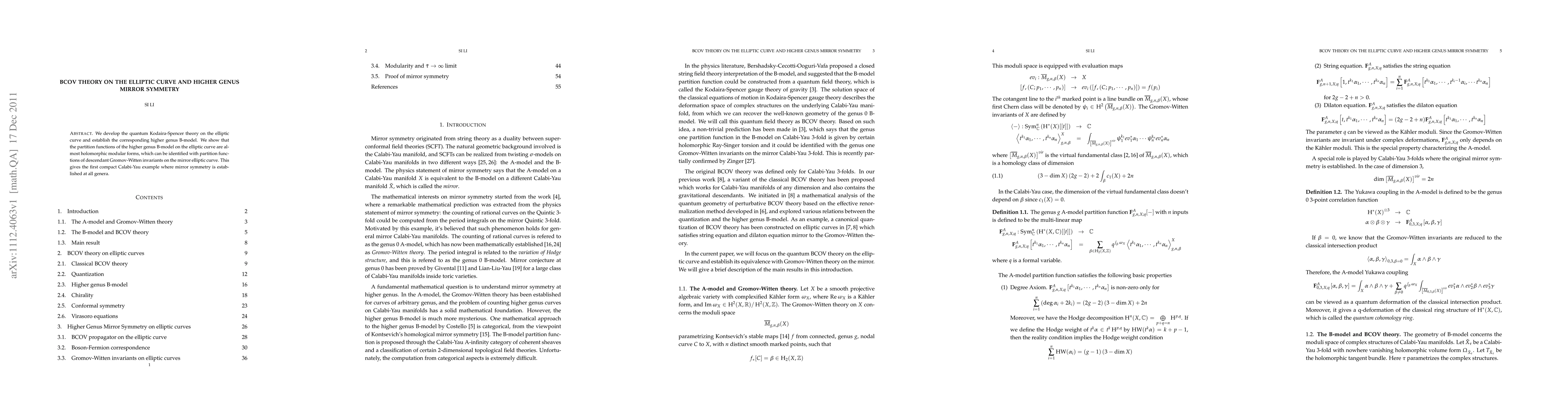 The paper develops quantum Kodaira-Spencer theory for elliptic curves and establishes a higher genus B-model, showing that its partition functions match those of descendant Gromov-Witten invariants on the mirror curve, thus establishing mirror symmetry for all genera.