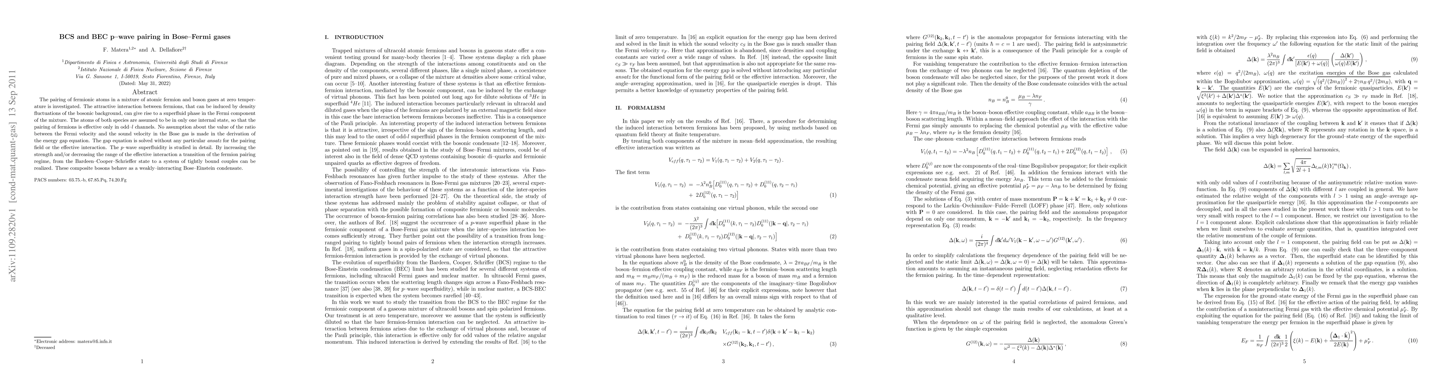 This paper investigates the superfluid pairing of fermions in a Bose-Fermi gas mixture, focusing on p-wave pairing induced by bosonic density fluctuations. It explores the transition from BCS-like to BEC-like states as the interaction strength changes, revealing the formation of composite bosons in a weakly-interacting Bose-Einstein condensate.