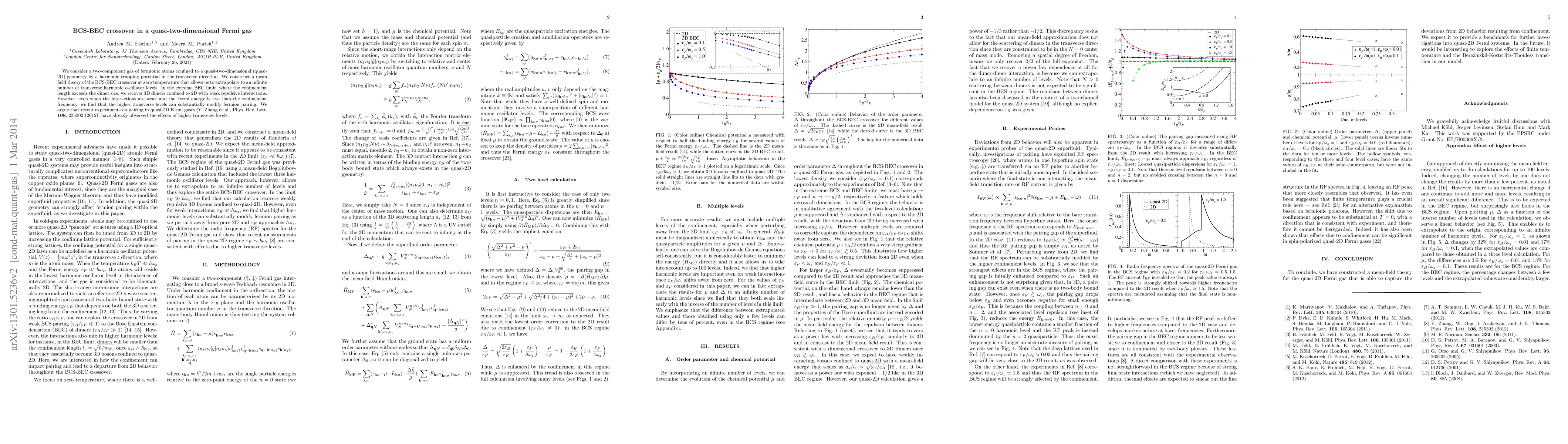 This paper develops a mean field theory for BCS-BEC crossover in quasi-2D Fermi gases, finding that higher transverse harmonic oscillator levels significantly influence fermion pairing, even in weakly interacting regimes. Experimental observations from recent studies corroborate these theoretical findings.