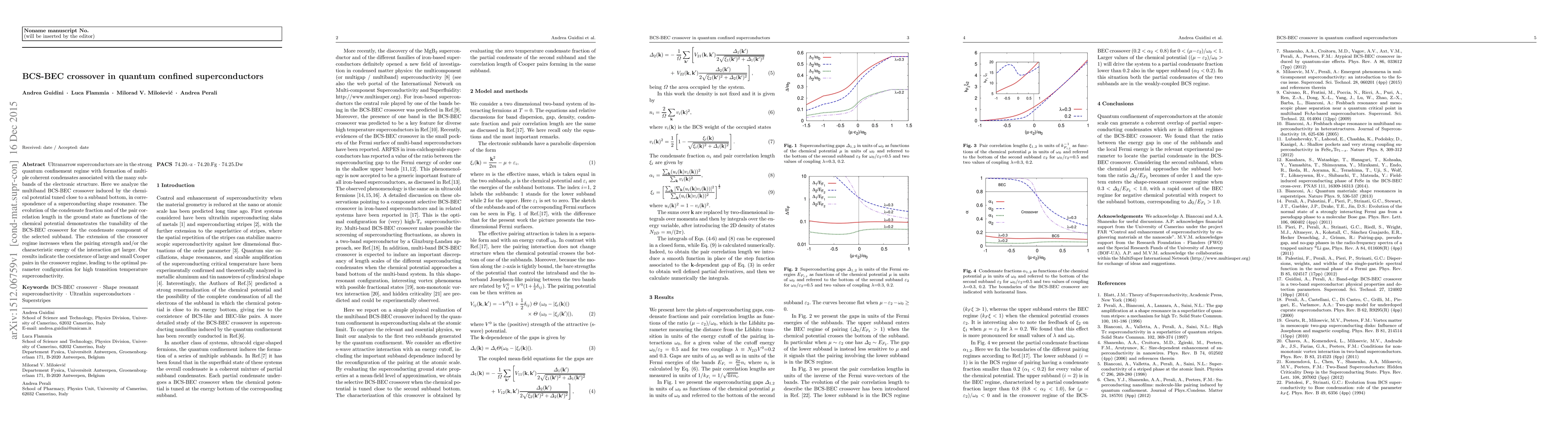 This paper investigates the BCS-BEC crossover in quantum confined superconductors, demonstrating how the condensate fraction and pair correlation length evolve with chemical potential, leading to tunable crossover regimes and the coexistence of large and small Cooper pairs, which optimizes high transition temperature superconductivity.
