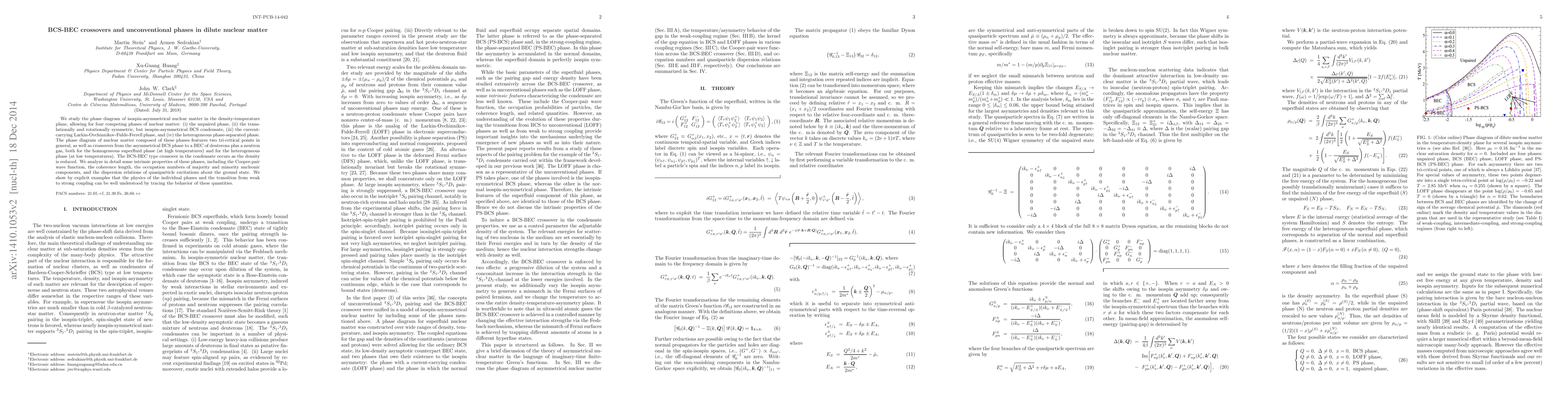 This paper investigates the phase diagram of isospin-asymmetrical nuclear matter, identifying four competing phases and detailing BCS-BEC crossovers. It explores intrinsic properties like Cooper-pair wave functions and coherence lengths to understand transitions from weak to strong coupling.