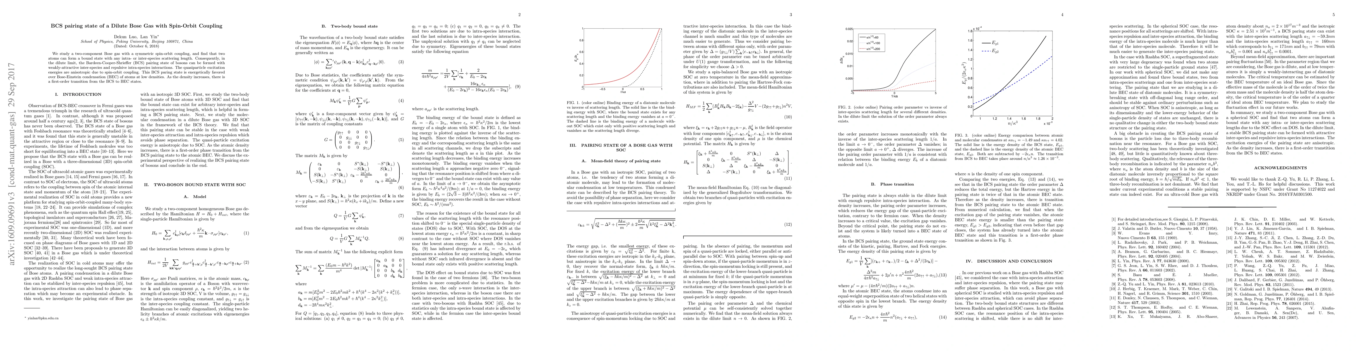 The paper presents a detailed analysis of a two-component Bose gas with spherical SOC, identifying conditions for bound state formation and a stable BCS pairing state in the dilute limit.