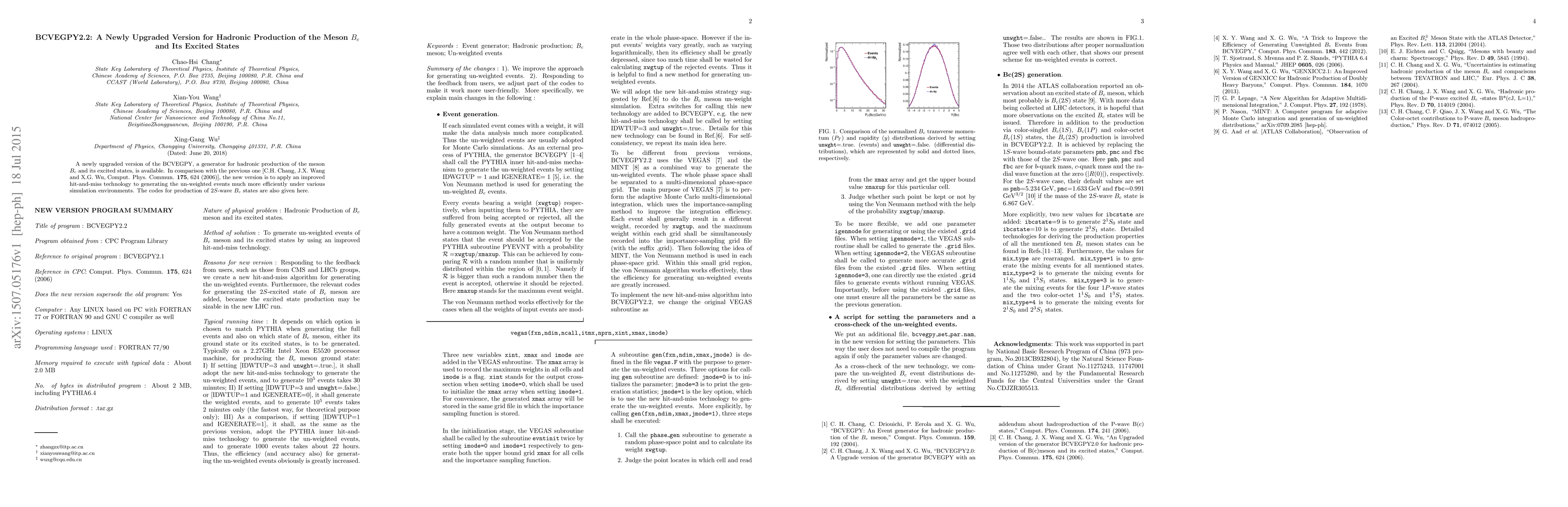 This paper introduces an upgraded version of the BCVEGPY generator, enhancing the efficiency of hadronic production simulations of the $B_c$ meson and its excited states. The new version employs improved hit-and-miss technology and includes codes for generating $2S$-wave $B_c$ states.
