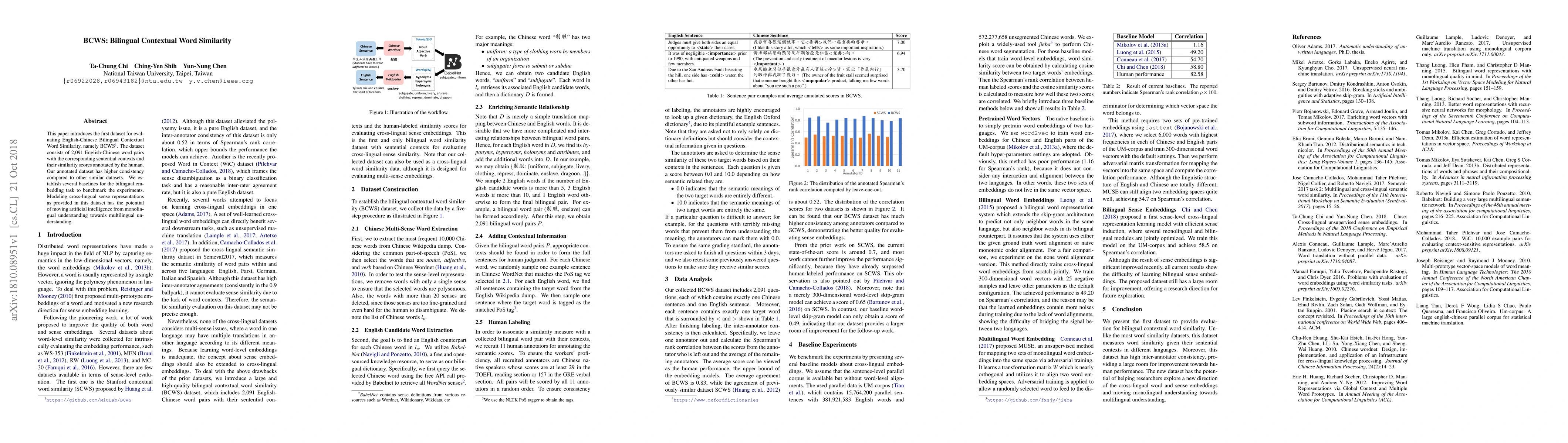This paper presents BCWS, a new dataset for evaluating English-Chinese Bilingual Contextual Word Similarity, featuring 2,091 word pairs with annotated context and human-scored similarity. The dataset aims to benchmark bilingual embedding tasks and advance multilingual AI understanding.