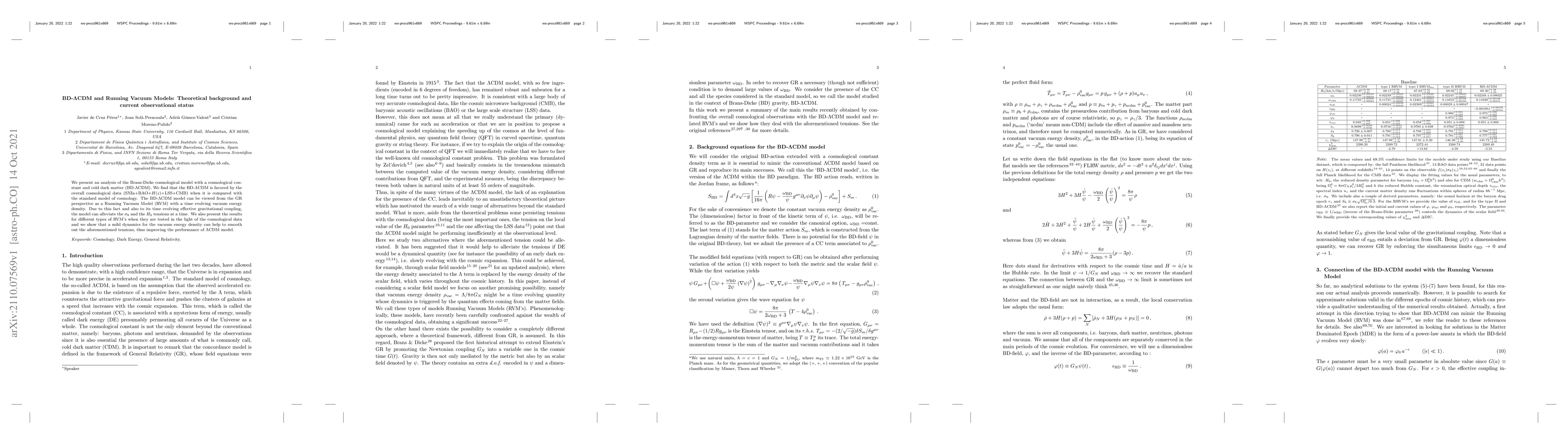 This paper analyzes the Brans-Dicke cosmological model with a cosmological constant and cold dark matter (BD-$\Lambda$CDM), finding it favored over the standard model when compared with current cosmological data. It also explores Running Vacuum Models (RVM) and shows that a mild dynamic vacuum energy density can alleviate tensions in $\sigma_8$ and $H_0$, thus improving the standard $\Lambda$CDM model.
