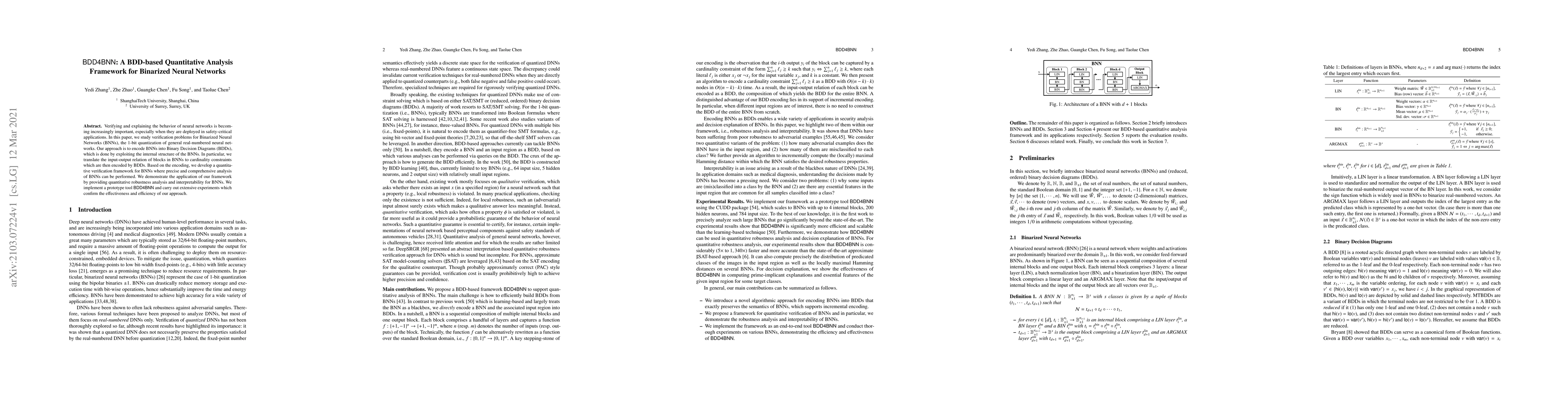 This paper proposes a BDD-based framework, BDD4BNN, for verifying and analyzing Binarized Neural Networks (BNNs) by encoding them into Binary Decision Diagrams. The framework enables precise robustness analysis and interpretability, validated through a prototype tool and extensive experiments.