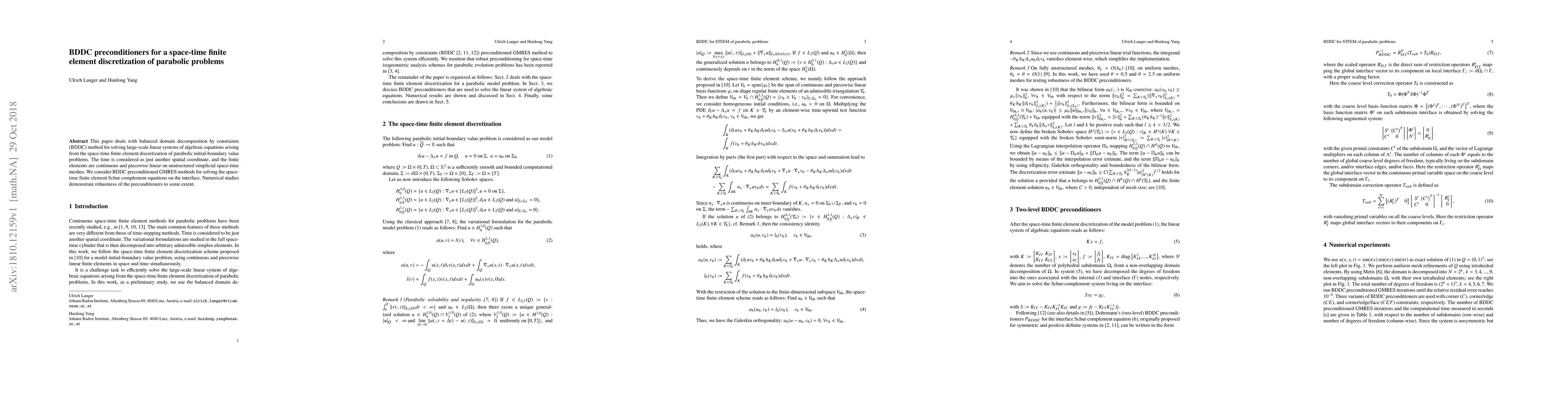 This paper explores the BDDC method for solving large-scale linear systems from space-time finite element discretizations of parabolic problems, employing continuous piecewise linear elements on unstructured meshes. Numerical results show the robustness of BDDC preconditioners in conjunction with GMRES methods for solving interface Schur complement equations.