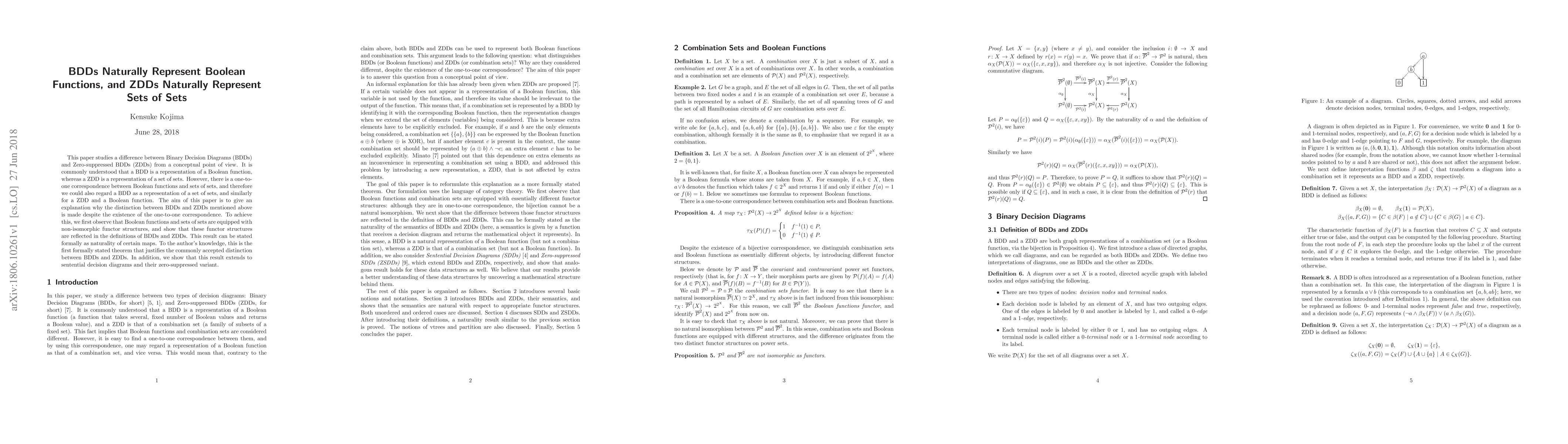 This paper argues that Binary Decision Diagrams (BDDs) naturally represent Boolean functions, while Zero-suppressed BDDs (ZDDs) naturally represent sets of sets, explaining the distinction through non-isomorphic functor structures inherent in BDDs and ZDDs. The study formally justifies this distinction and extends the result to sentential decision diagrams and their zero-suppressed variants.