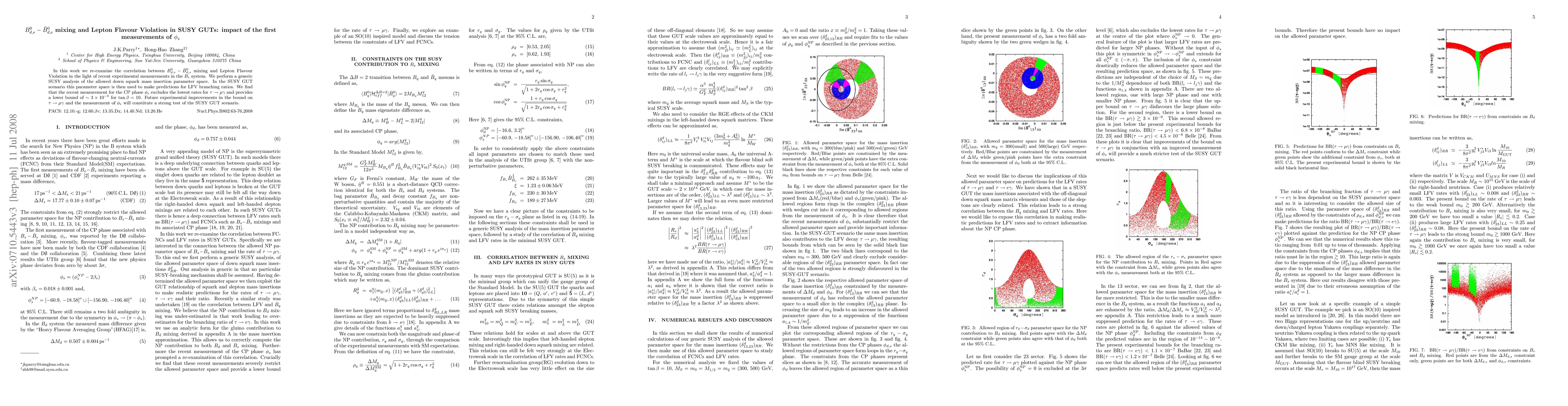 In this work we re-examine the correlation between B(d,s)-anti-B(d,s) mixing and Lepton Flavour Violation in the light of recent experimental measurements in the $B_s$ system. We perform a generic SUSY analysis of the allowed down squark mass insertion parameter space. In the SUSY GUT scenario this parameter space is then used to make predictions for LFV branching ratios. We find that the recent measurement for the CP phase $\phi_s$ excludes the lowest rates for tau --> mu + gamma and provides a lower bound of ~ 3E-9 for tan beta = 10. Future experimental improvements in the bound on tau --> mu + gamma and the measurement of phi(s) will constitute a strong test of the SUSY GUT scenario.