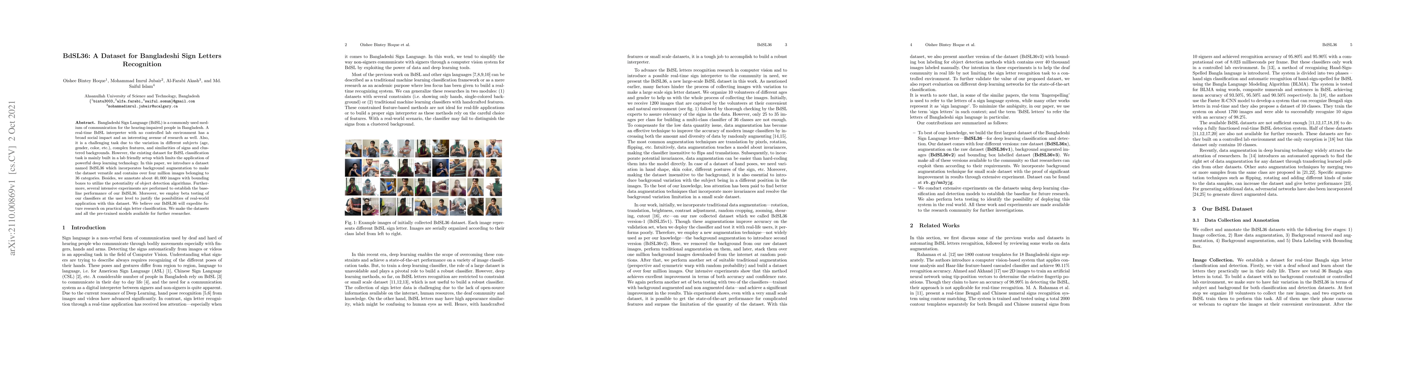 A new dataset called BdSL36 has been introduced for Bangladeshi Sign Language recognition, featuring over four million images across 36 categories with background augmentation and object detection annotations.