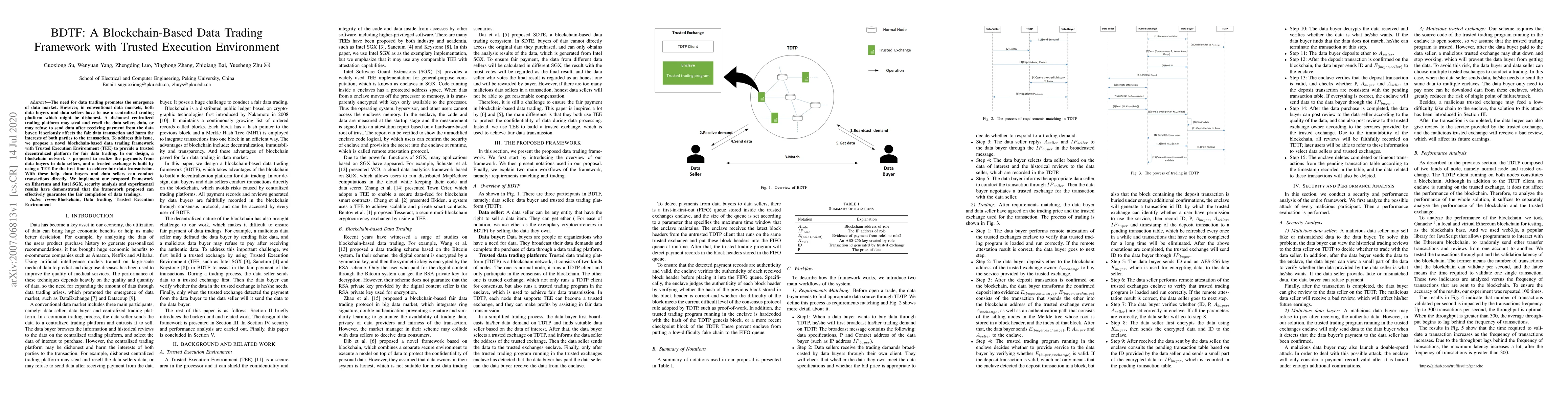 The paper proposes a blockchain-based data trading framework with Trusted Execution Environment (TEE) to create a decentralized platform for fair data transactions, addressing the risks of dishonest centralized trading platforms. The framework uses blockchain for payments and TEE for secure data exchange, implemented on Ethereum and Intel SGX, demonstrating effective security and fairness in data trading.