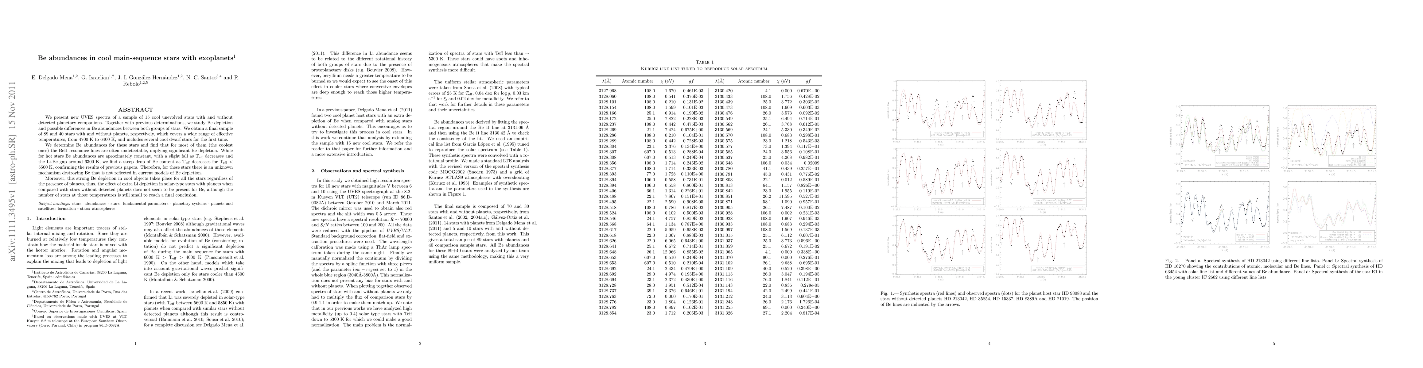 This study investigates Be abundances in cool main-sequence stars, finding significant Be depletion in the coolest stars, regardless of the presence of planets. While Be abundances are relatively constant in hotter stars, a steep drop occurs below 5500 K, suggesting an unknown mechanism affecting Be depletion.
