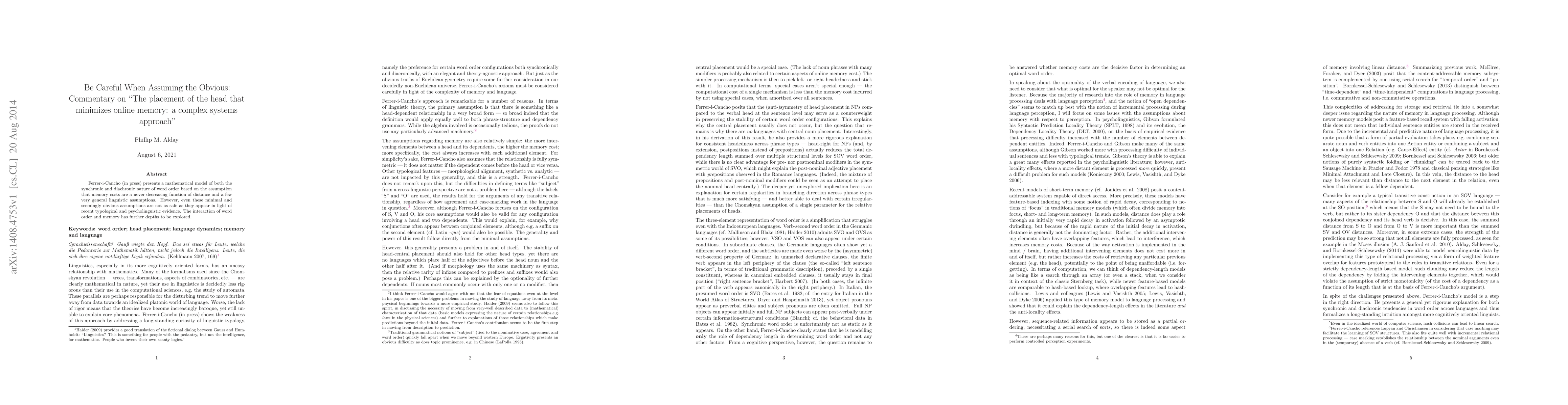 Ferrer-i-Cancho (2015) presents a mathematical model of both the synchronic and diachronic nature of word order based on the assumption that memory costs are a never decreasing function of distance and a few very general linguistic assumptions. However, even these minimal and seemingly obvious assumptions are not as safe as they appear in light of recent typological and psycholinguistic evidence. The interaction of word order and memory has further depths to be explored.