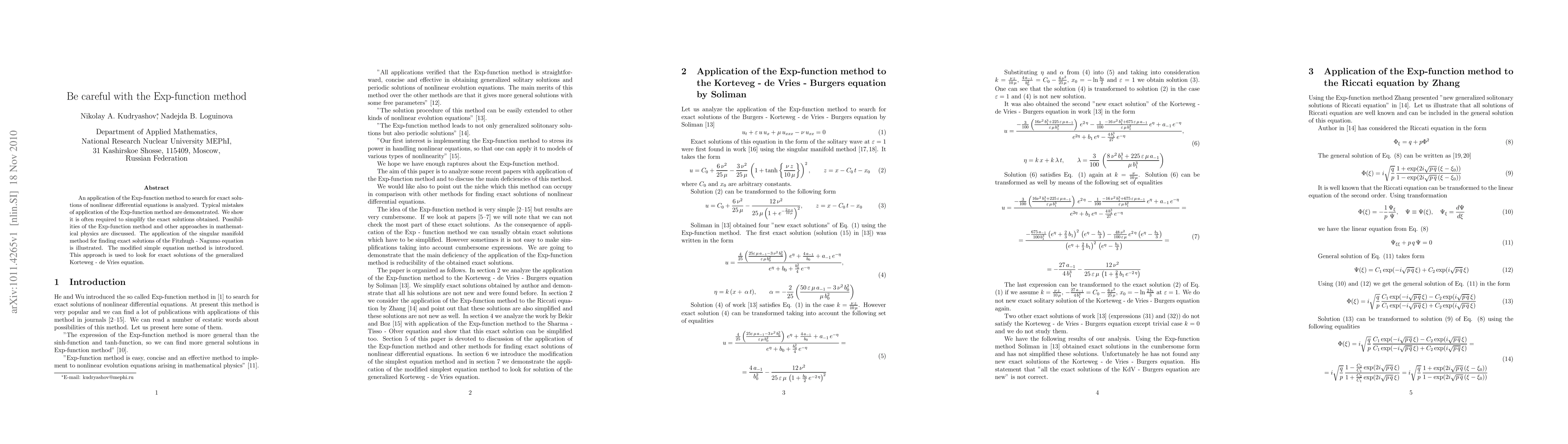 This paper examines the application of the Exp-function method for solving nonlinear differential equations, highlighting common mistakes and the necessity of simplifying obtained solutions. It also introduces the modified simple equation method and demonstrates its use in solving the generalized Korteweg-de Vries equation.