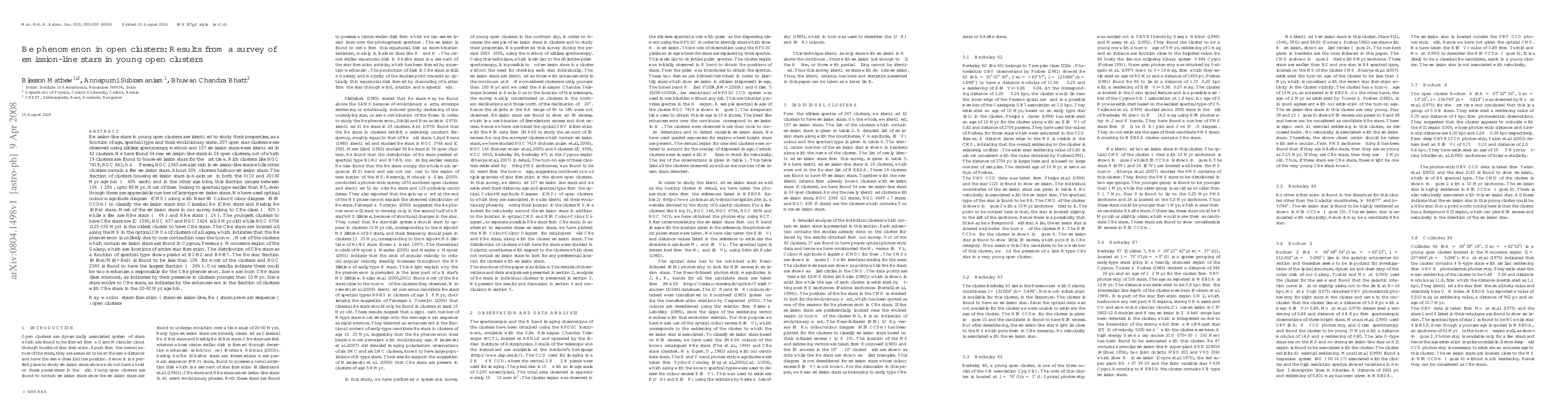 A survey of 207 open star clusters found that 20% harbor emission-line stars, with a higher frequency in younger clusters (<10 Myr), suggesting two mechanisms driving the Be phenomenon: born CBe stars and evolutionary processes.