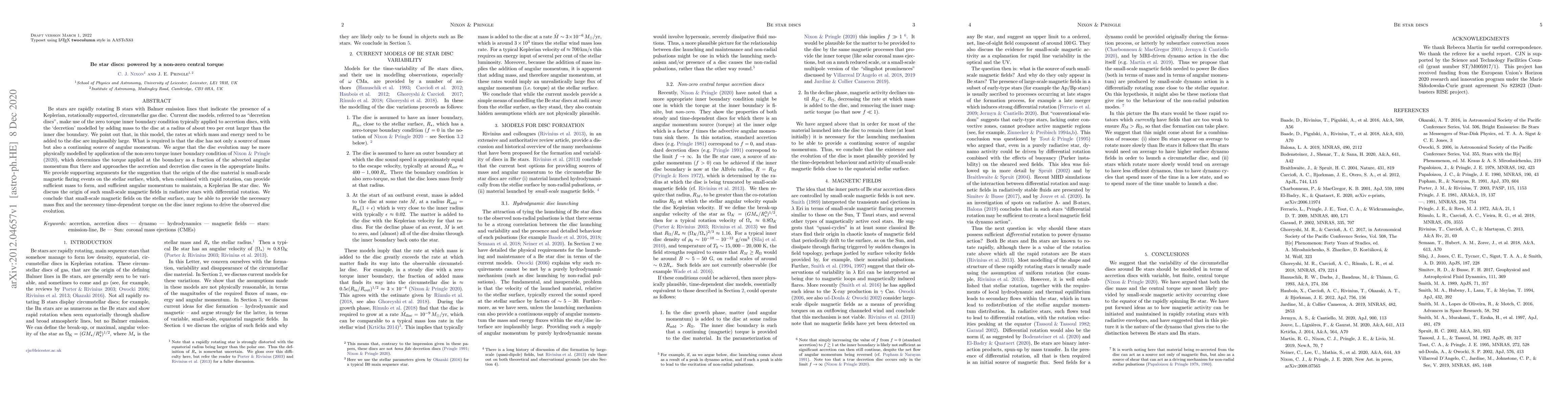 Be stars are rapidly rotating B stars with Balmer emission lines that indicate the presence of a Keplerian, rotationally supported, circumstellar gas disc. Current disc models, referred to as "decretion discs", make use of the zero torque inner boundary condition typically applied to accretion discs, with the 'decretion' modelled by adding mass to the disc at a radius of about two per cent larger than the inner disc boundary. We point out that, in this model, the rates at which mass and energy need to be added to the disc are implausibly large. What is required is that the disc has not only a source of mass but also a continuing source of angular momentum. We argue that the disc evolution may be more physically modelled by application of the non-zero torque inner boundary condition of Nixon & Pringle (2020), which determines the torque applied at the boundary as a fraction of the advected angular momentum flux there and approaches the accretion and decretion disc cases in the appropriate limits. We provide supporting arguments for the suggestion that the origin of the disc material is small-scale magnetic flaring events on the stellar surface, which, when combined with rapid rotation, can provide sufficient mass to form, and sufficient angular momentum to maintain, a Keplerian Be star disc. We discuss the origin of such small-scale magnetic fields in radiative stars with differential rotation. We conclude that small-scale magnetic fields on the stellar surface, may be able to provide the necessary mass flux and the necessary time-dependent torque on the disc inner regions to drive the observed disc evolution.