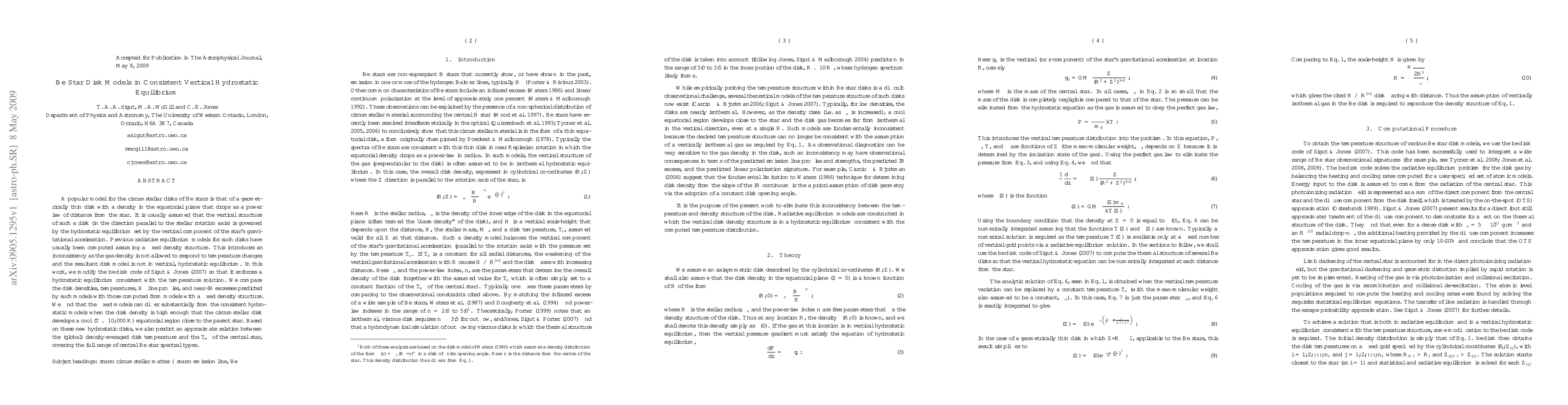 This paper modifies the Bedisk code to enforce vertical hydrostatic equilibrium in Be star circumstellar disks, finding significant differences in disk density and temperature compared to models with fixed density structures, especially in cooler regions near the star. It also predicts a relation between the disk's temperature and the central star's effective temperature.