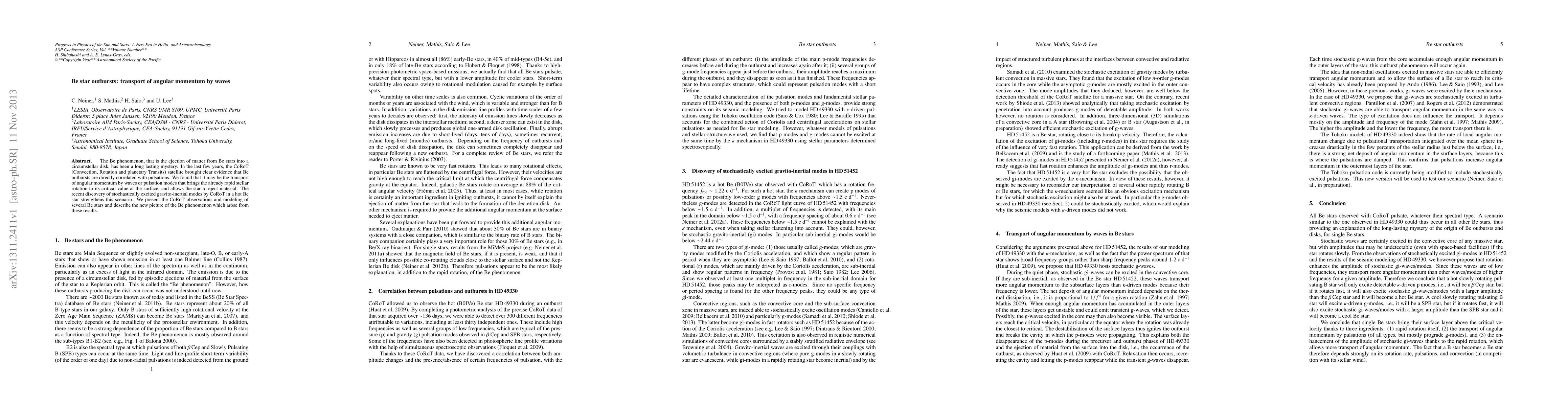 The Be phenomenon, that is the ejection of matter from Be stars into a circumstellar disk, has been a long lasting mystery. In the last few years, the CoRoT (Convection, Rotation and planetary Transits) satellite brought clear evidence that Be outbursts are directly correlated with pulsations. We found that it may be the transport of angular momentum by waves or pulsation modes that brings the already rapid stellar rotation to its critical value at the surface, and allows the star to eject material. The recent discovery of stochastically excited gravito-inertial modes by CoRoT in a hot Be star strengthens this scenario. We present the CoRoT observations and modeling of several Be stars and describe the new picture of the Be phenomenon which arose from these results.