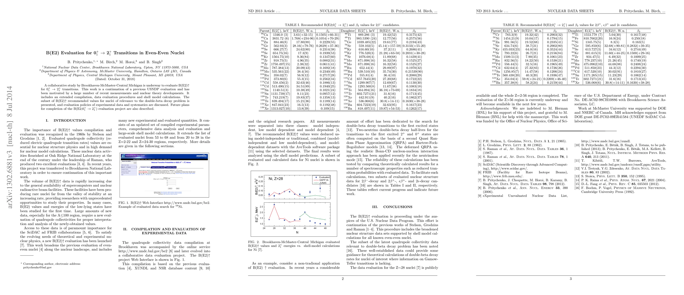 Researchers evaluated B(E2) values for 0+ to 2+ transitions in even-even nuclei, providing recommendations for nuclear theory and double-beta decay.