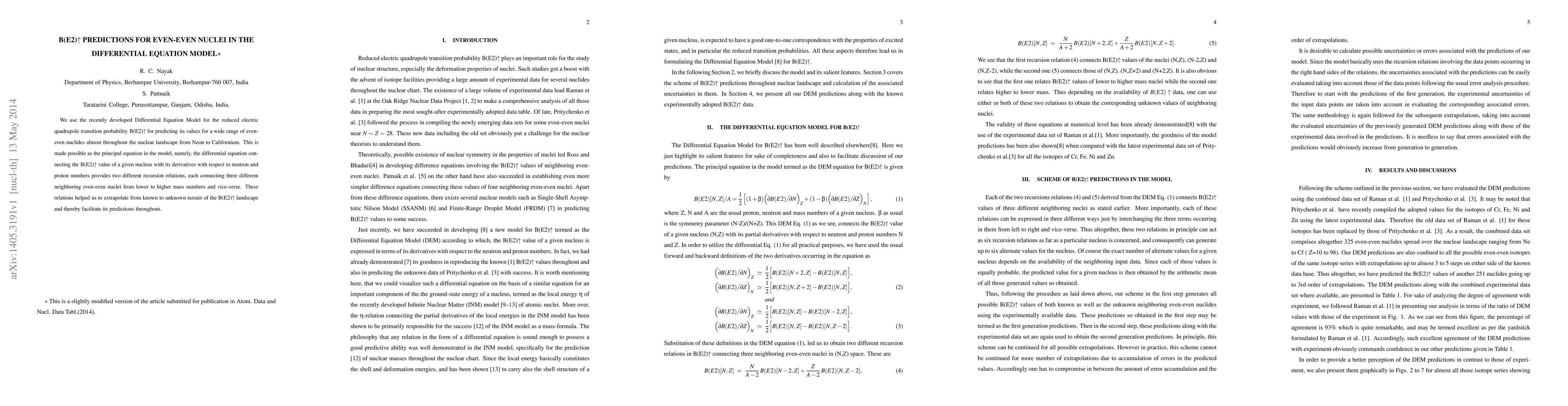 This paper utilizes a Differential Equation Model to predict B(E2) values for even-even nuclei across the nuclear chart, from Neon to Californium. The model's principal equation provides recursion relations that enable extrapolations, facilitating predictions throughout the unknown B(E2) landscape.