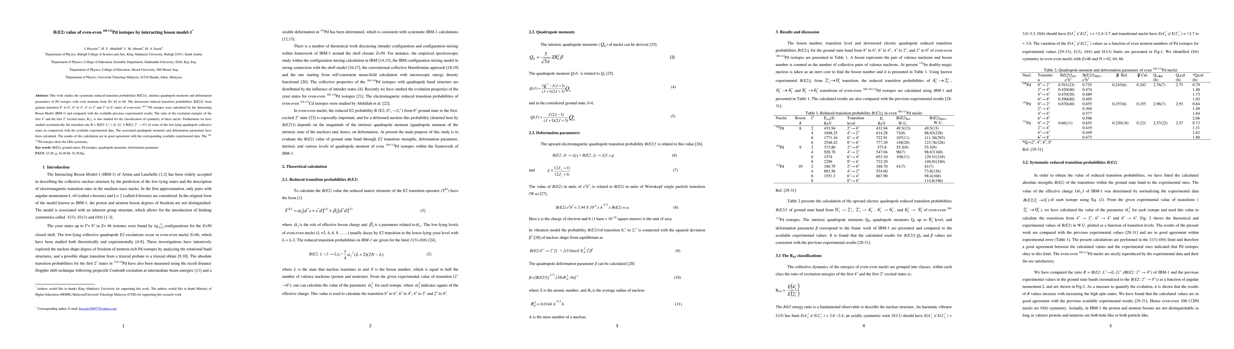 This work studies the systematic reduced transition probabilities B(E2), intrinsic quadrupole moments and deformation parameters of Pd isotopes with even neutrons from N= 62 to 66. The downward reduced transition probabilities B(E2) from gamma transition 8+ to 6+, 6+ to 4+, 4+ to 2+ and 2+ to 0+ states of even-even 108-112Pd isotopes were calculated by the Interacting Boson Model (IBM-1) and compared with the available previous experimental results. The ratio of the excitation energies of the first 4+ and the first 2+ excited states, R4/2, is also studied for the classification of symmetry of these nuclei. Furthermore we have studied systematically the transition rate R of some of the low-lying quadrupole collective states in comparison with the available experimental data. The associated quadrupole moments and deformation parameters have been calculated. The results of this calculation are in good agreement with the corresponding available experimental data. The 108-112Pd isotopes show the O(6) symmetry.