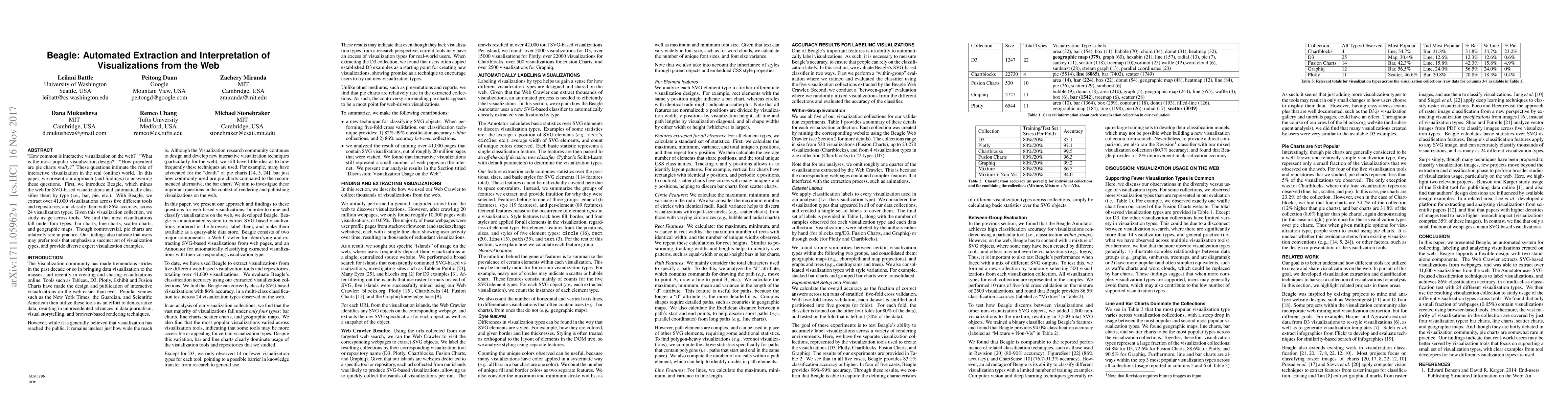 "How common is interactive visualization on the web?" "What is the most popular visualization design?" "How prevalent are pie charts really?" These questions intimate the role of interactive visualization in the real (online) world. In this paper, we present our approach (and findings) to answering these questions. First, we introduce Beagle, which mines the web for SVG-based visualizations and automatically classifies them by type (i.e., bar, pie, etc.). With Beagle, we extract over 41,000 visualizations across five different tools and repositories, and classify them with 86% accuracy, across 24 visualization types. Given this visualization collection, we study usage across tools. We find that most visualizations fall under four types: bar charts, line charts, scatter charts, and geographic maps. Though controversial, pie charts are relatively rare in practice. Our findings also indicate that users may prefer tools that emphasize a succinct set of visualization types, and provide diverse expert visualization examples.