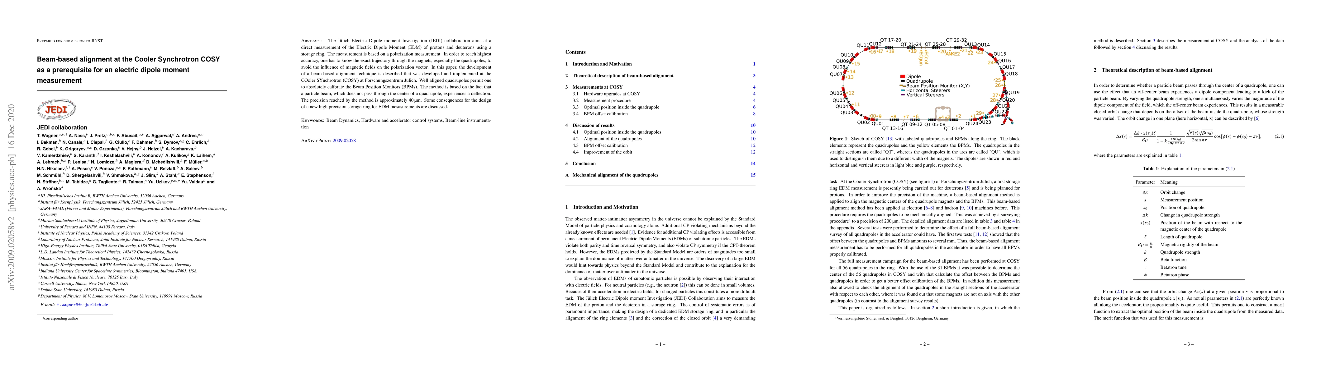 This paper details the development of a beam-based alignment technique at COSY to precisely calibrate Beam Position Monitors, crucial for the JEDI collaboration's goal of measuring the Electric Dipole Moment of protons and deuterons with high accuracy. The method achieves a precision of around 40 micrometers, essential for minimizing magnetic field influences on polarization measurements.