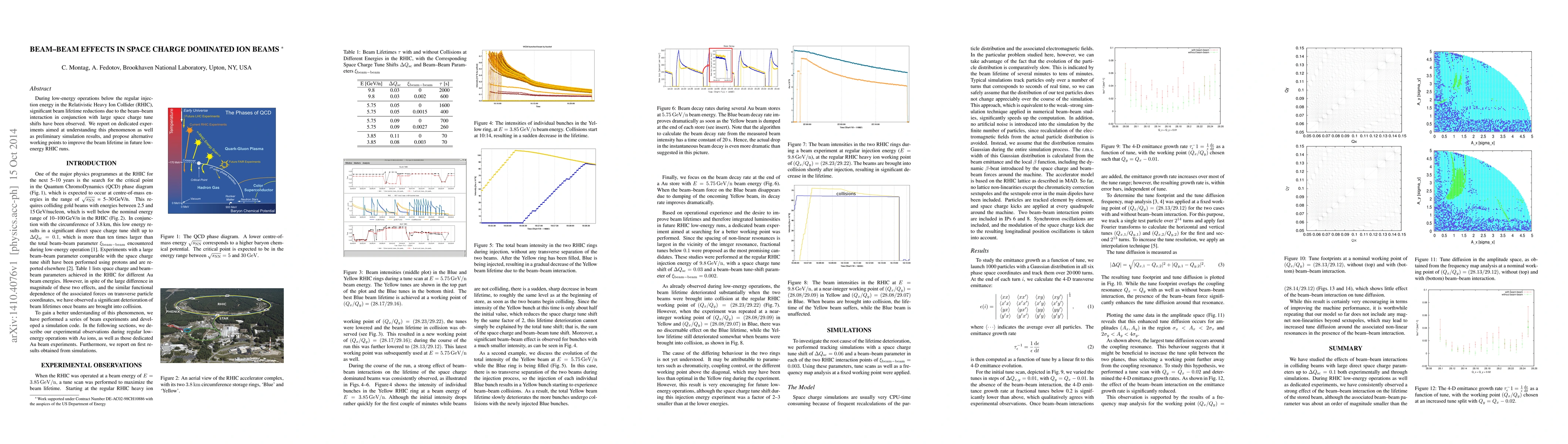 This paper investigates beam-beam interactions and space charge effects causing reduced beam lifetime in low-energy operations of the RHIC, presenting experimental findings and simulations, and suggesting improved operational points for future runs.