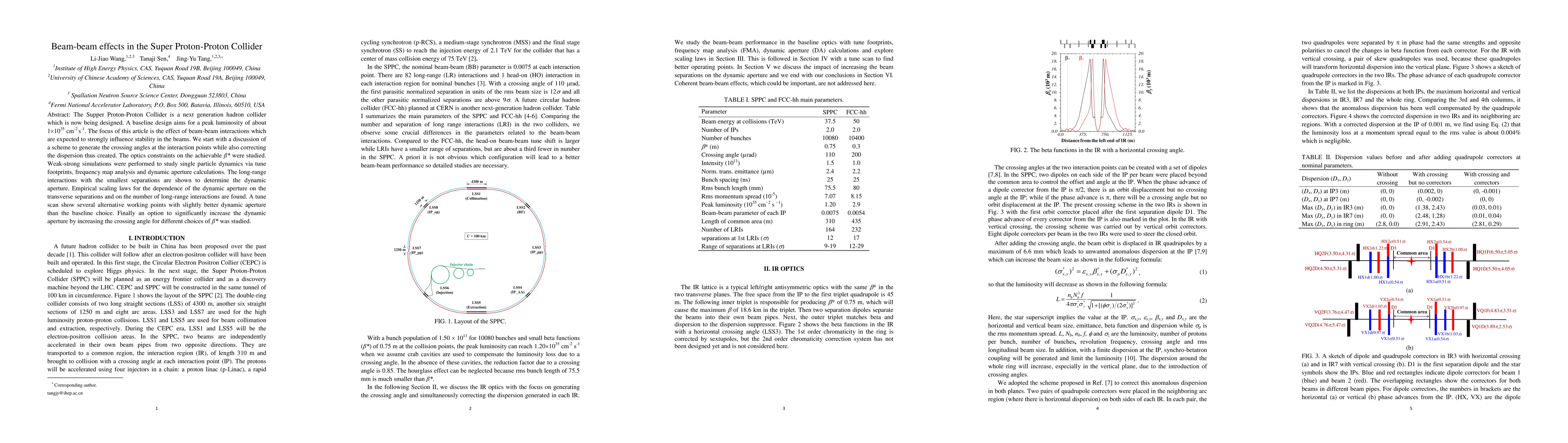 The paper investigates beam-beam interactions in the Super Proton-Proton Collider, finding empirical scaling laws for dynamic aperture and several alternative working points with improved performance.