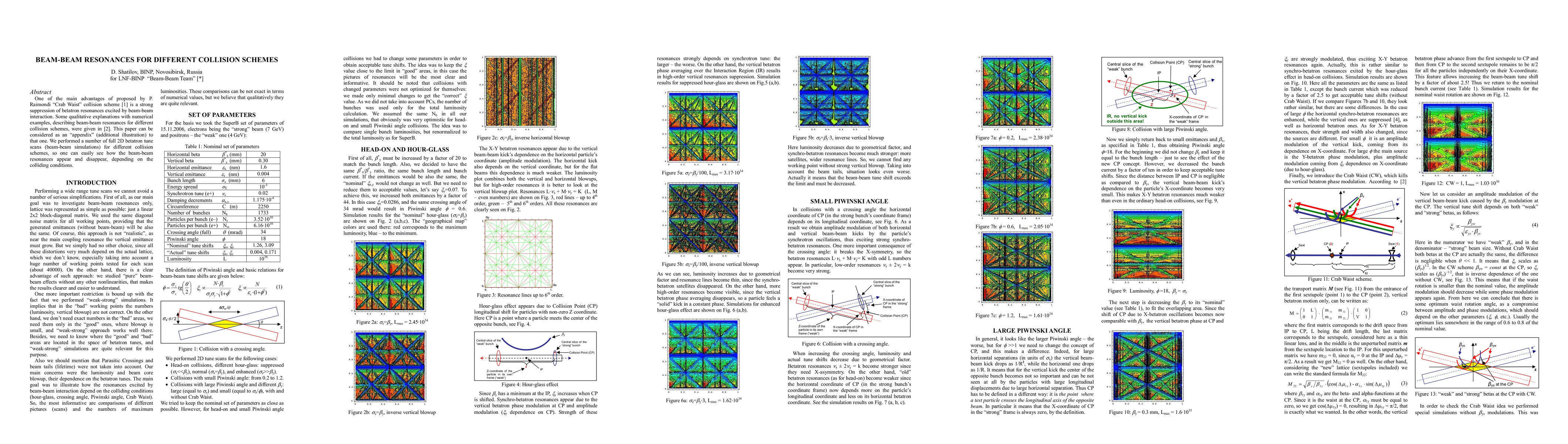 One of the main advantages of proposed by P. Raimondi "Crab Waist" collision scheme is a strong suppression of betatron resonances excited by beam-beam interaction. Some qualitative explanations with numerical examples, describing beam-beam resonances for different collision schemes, were given in arXiv:physics/0702033. This paper can be considered as an "appendix" (additional illustration) to that one. We performed a number of full 2D betatron tune scans (beam-beam simulations) for different collision schemes, so one can easily see how the beam-beam resonances appear and disappear, depending on the colliding conditions.