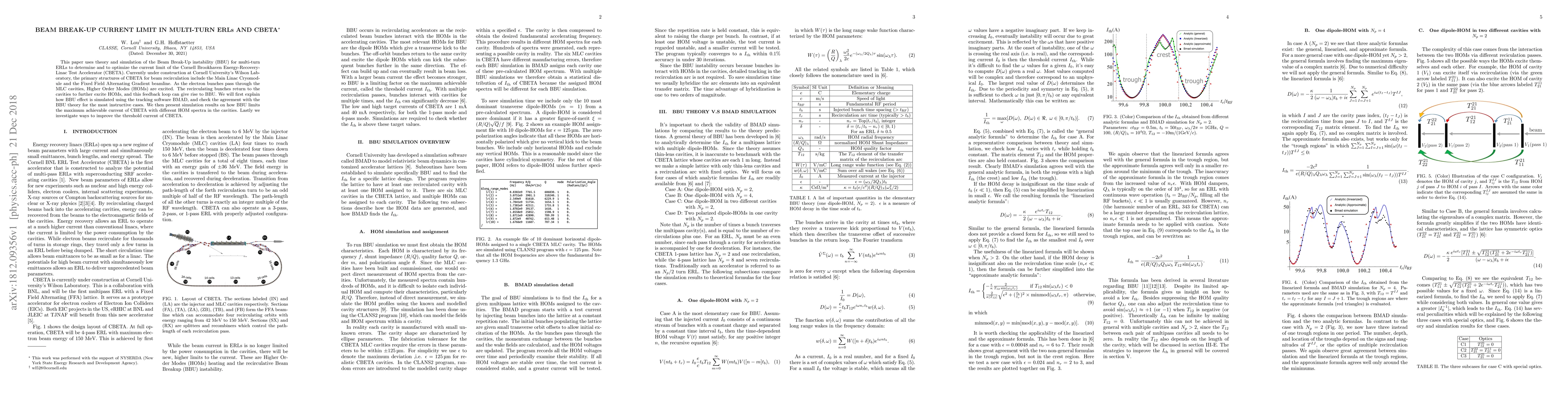 This paper investigates the Beam Break-Up instability (BBU) in multi-turn ERLs, focusing on the Cornell Brookhaven Energy-Recovery-Linac Test Accelerator (CBETA). It uses simulation and theory to determine and optimize CBETA's current limit, exploring methods to improve its threshold current.