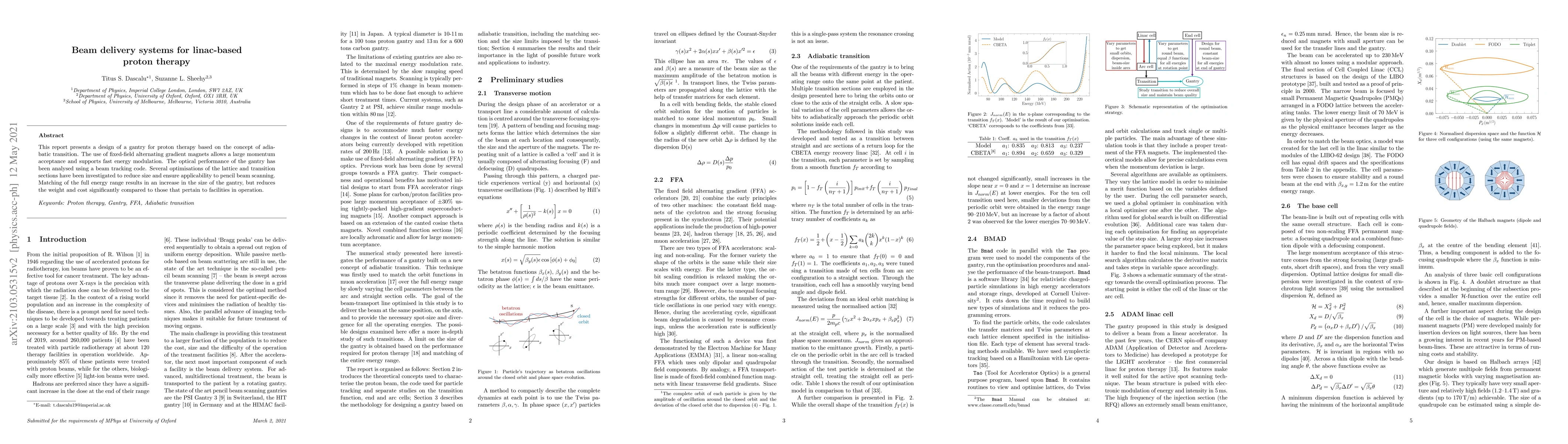This report presents a design of a gantry for proton therapy based on the concept of adiabatic transition. The use of fixed-field alternating gradient magnets allows a large momentum acceptance and supports fast energy modulation. The optical performance of the gantry has been analysed using a beam tracking code. Several optimisations of the lattice and transition sections have been investigated to reduce size and ensure applicability to pencil beam scanning. Matching of the full energy range results in an increase in the size of the gantry, but reduces the weight and cost significantly compared to those that pertain to facilities in operation.
