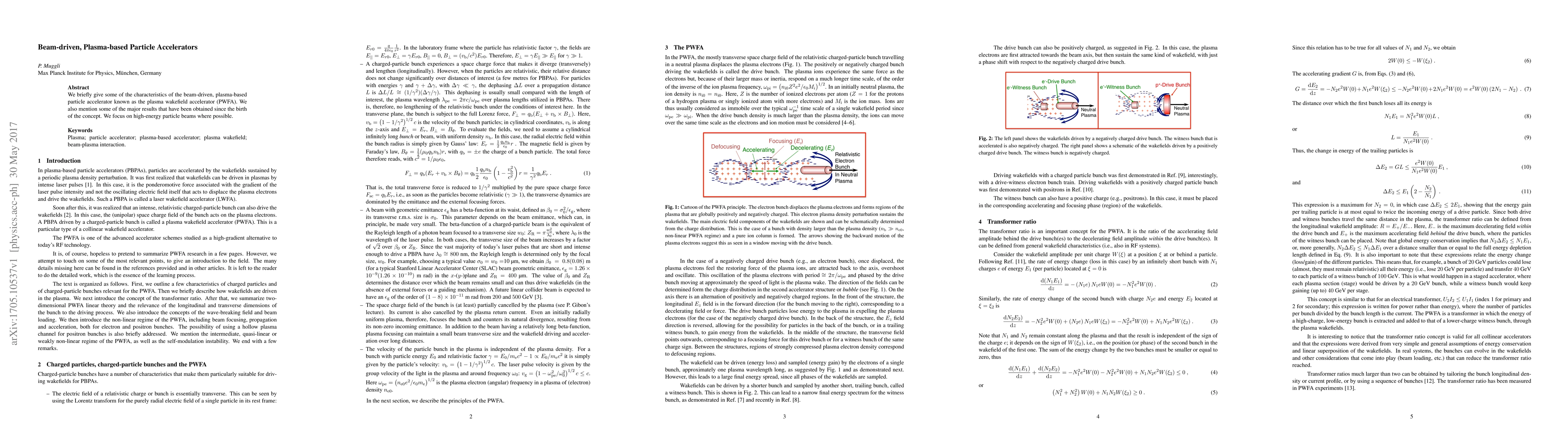 The paper discusses beam-driven plasma-based particle accelerators, specifically focusing on plasma wakefield accelerators (PWFA). It explores the characteristics and major results of PWFA, emphasizing high-energy particle beams.