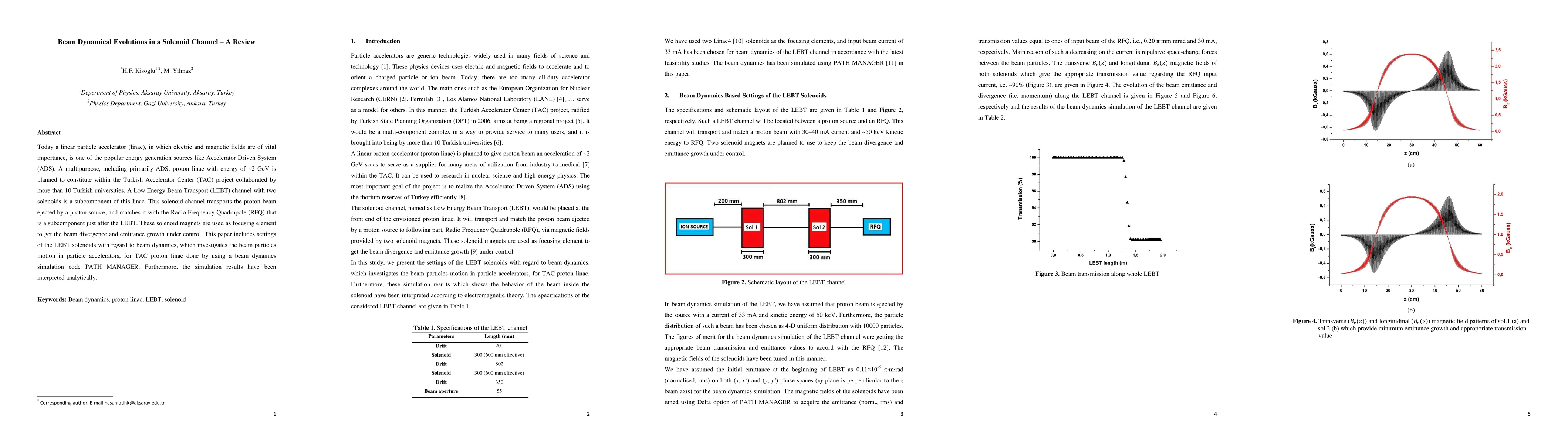 This paper reviews the beam dynamical evolutions in a solenoid channel within the Turkish Accelerator Center's planned 2 GeV multipurpose proton linac, focusing on controlling beam divergence and emittance growth using solenoid magnets. The study employs the PATH MANAGER simulation code and analytically interprets the results.