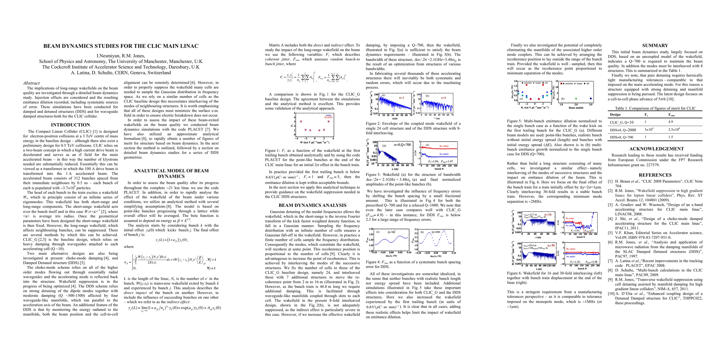 Researchers studied beam dynamics for CLIC's Main Linac, finding that long-range wakefields can dilute emittance due to injection offsets, particularly in damped and detuned structures.